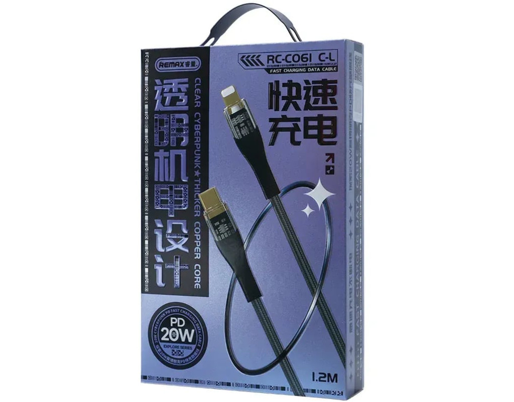 | Кабель Remax RC-C061 – прочный и износостойкий кабель. Модель реализована в современном дизайне, практична в повседневной эксплуатации. Позволяет подключить устройство для синхронизации и передачи данных. Выходной ток: 9V2.22A Прозрачный внешний вид корпуса коннекторов в стиле киберпанк, быстрая зарядка PD20W. Оплетка гибкая и безворсовая. Позолоченный разъем, прозрачная внешняя форма. |