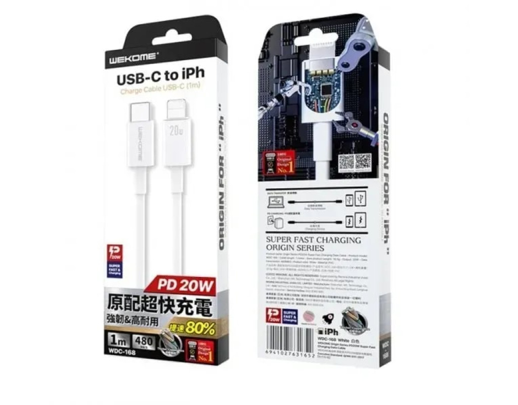 | Кабель USB Lightning-Type-C WK WDC-168 PD относится к типу зарядных шнуров, для быстрой зарядки, синхро-зарядных. Он идеально подходит для телефонов, для планшетов, MP3 плееров. USB-кабель WK 20W USB Type-C – Lightning Cable имеет выходы Type C – Lightning, Type C, Lightning. Качественные шнуры этого типа можно использовать для зарядки не только компактных устройств, но и лэптопов, если у них предусмотрена поддержка быстрой зарядки Power Delivery. |