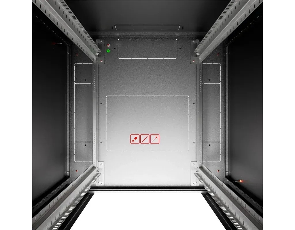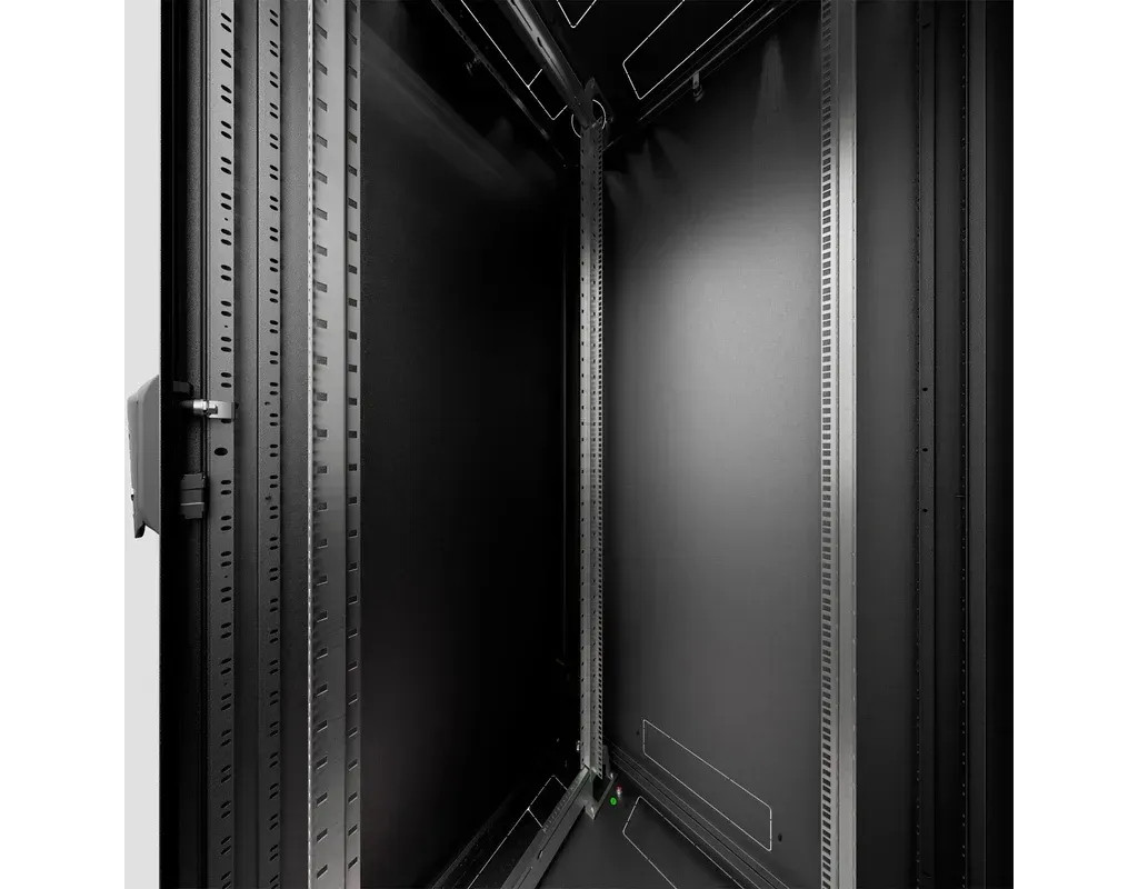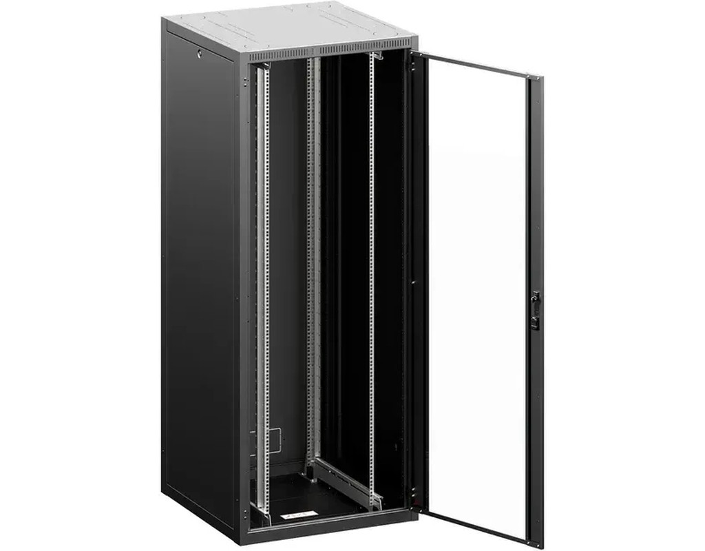 | Розмір • Висота: 42U • Ширина: 600 мм • Глибина: 600 мм Конструкція • Цільнозварний каркас • Сталь товщиною 1,5 та 2,0 мм Передні двері • Загартоване скло в сталевій рамі з поворотною ручкою із замком — DIN-профіль, універсальний ключ типу 333 Задні стінка • Знімна, з просічками отвору під кабельне введення, із замком Вантажопідйомність • 800 кг збалансованого навантаження 19” вертикальні напрямні • 2 пари 19” вертикальних напрямних з можливістю установки на довільній глибині (регулювання положення – зсередини шафи) Колір • RAL9005 чорний |