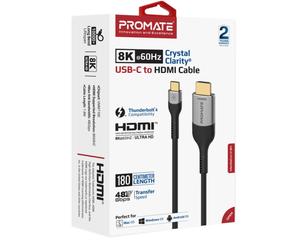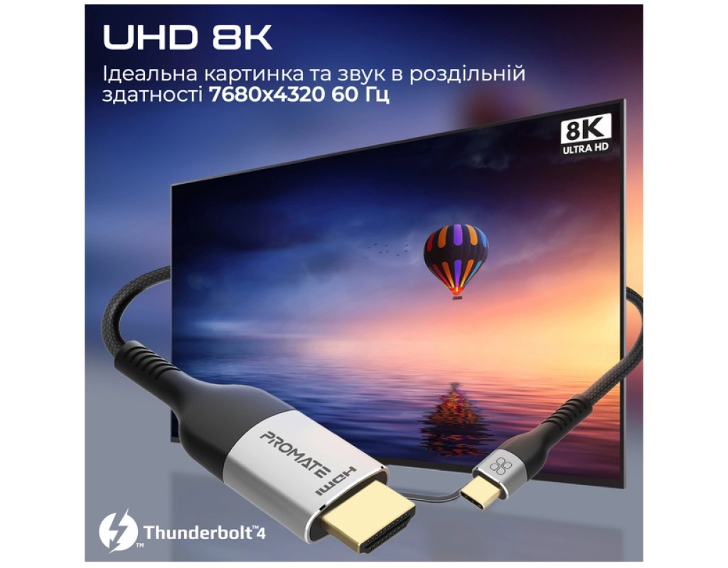 MediaCord-8K - премиальный USB-C to HDMI кабель от Promate с поддержкой ThunderboltTM4.