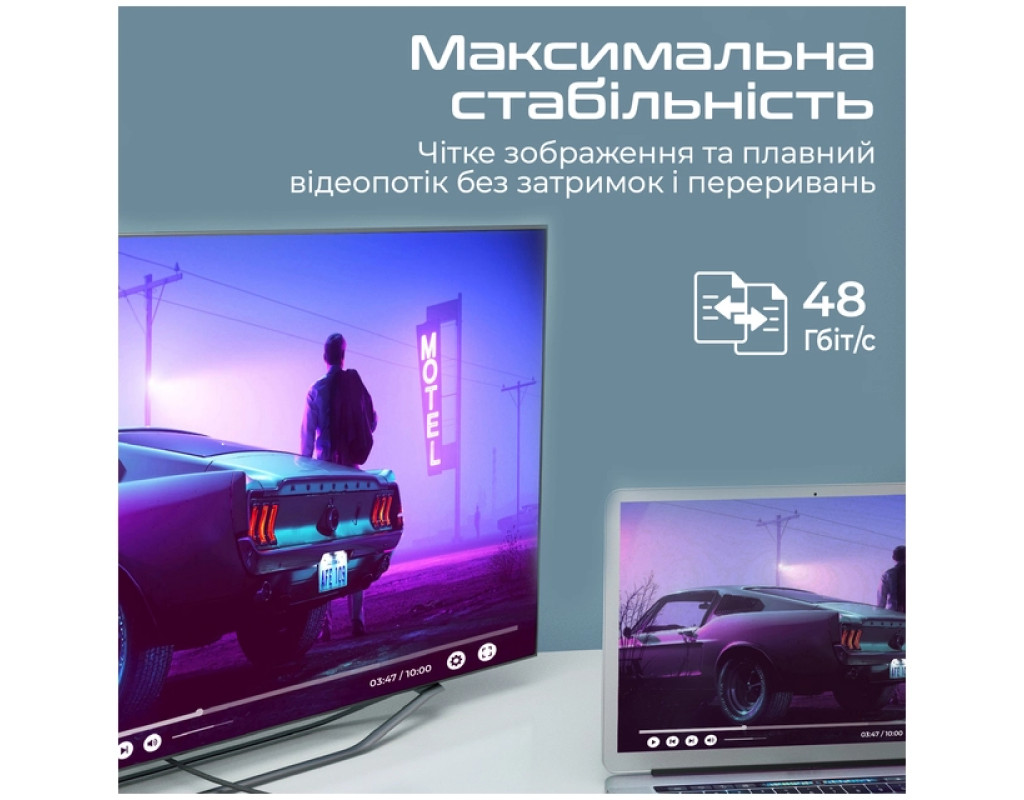 - Максимальная стабильность: Пропускная способность 48 Гбит/с и современный чипсет гарантируют четкое изображение и плавный видеопоток без задержек и прерываний.