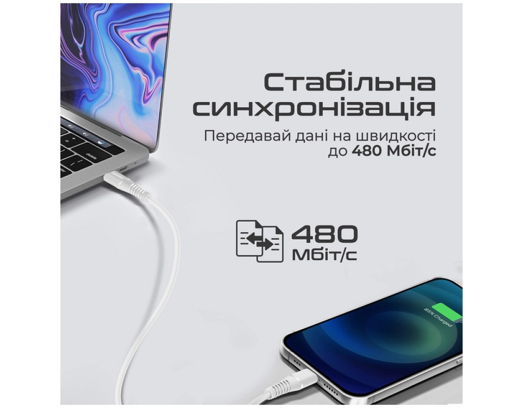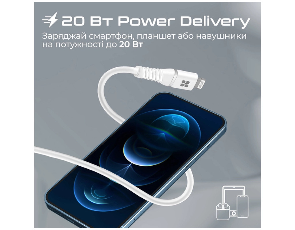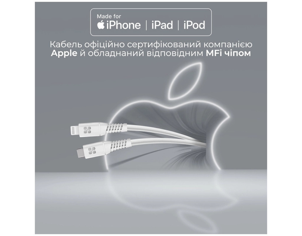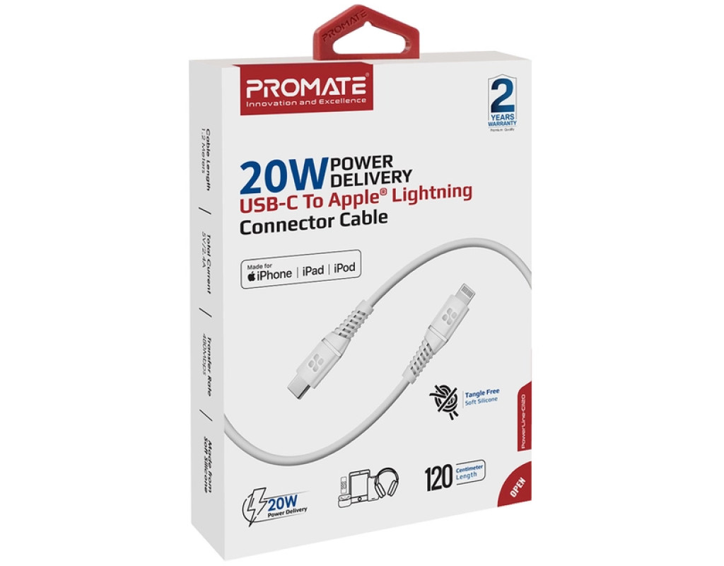 Дата кабель USB-C to Lightning 1.2m 20W PD MFi black Promate (powerline-ci120.white)