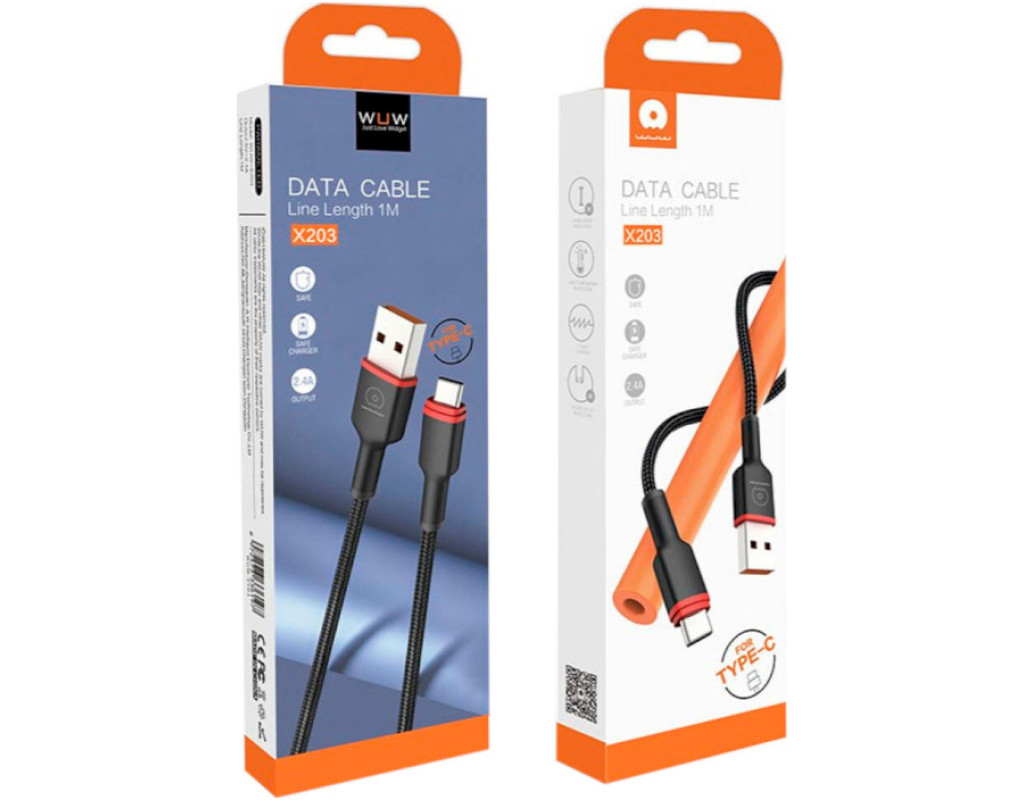 Дата кабель USB 2.0 AM to USB-C 1.0m 2.4A X203 black WUW (6972573336203)
