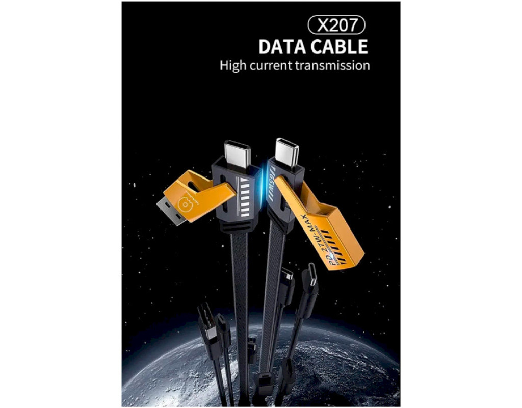 Дата кабель USB-C + USB-A to Lightning+USB-C 1.0m 65W X207 black WUW (6972573336524)