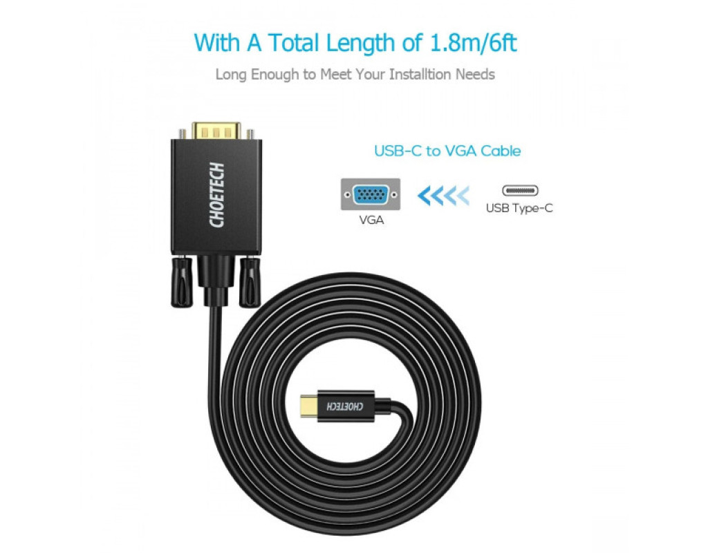 Кабель USB 3.1 Type-C M – VGA (HD15) M, 1.8m FHD 60Hz черный Choetech – это надежное решение для передачи изображения и звука высочайшего качества. Благодаря поддержке разрешения 8K (7680x4320) при 60Hz, кабель обеспечивает невероятную четкость и детализацию изображения. Стандарт V1.4 гарантирует стабильную передачу данных, что делает его идеальным выбором для работы, игры или просмотра мультимедиа. Длина 2 метра обеспечивает удобство подключения, а высокое качество материалов гарантирует долговечность. Кабель Choetech – это сочетание инновационных технологий и надежности. |
