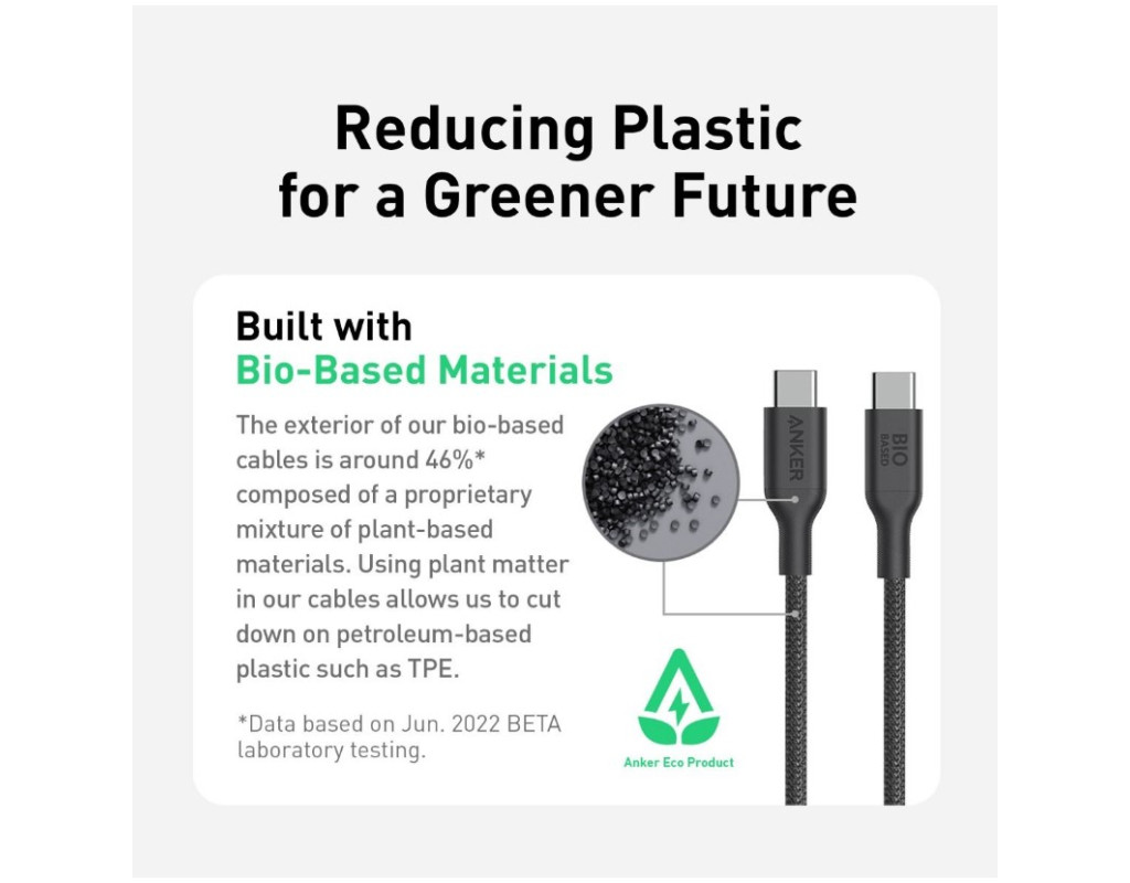Создан из нейлона на биологической основе 46% внешней оплетки кабеля изготовлено из нейлона на биологической основе, а 34% корпуса разъема изготовлено с использованием других материалов на биологической основе. Использование биоматериалов в наших кабелях позволяет нам сократить использование пластика на нефтяной основе, такого как TPE. Быстрая зарядка Заряжайте Samsung Galaxy S22 Ultra на 65% всего за 30 минут. Долговечный Выдерживает до 30 000 сгибов, устойчив к истиранию и перегибам даже после 10 000 испытаний. Широкая совместимость Соответствует стандартам безопасности USB-IF для безупречной совместимости практически с любыми устройствами USB-C, в том числе телефонами, планшетами, ноутбуками и т.д.