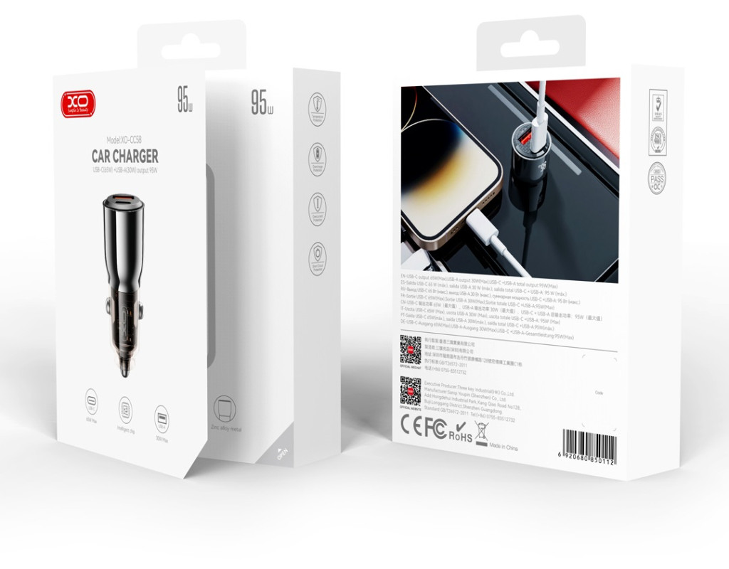 XO CC58 - высокоскоростное автомобильное зарядное устройство Быстрая зарядка Заряжайте телефоны, планшеты и прочее на высокой скорости с помощью технологии Power Delivery и Quick Charge Зарядит даже ноутбук Type-C (65W) позволит заряжать смартфоны и более мощные устройства (зарядные станции, аккумуляторы и павербанки) на высокой скорости в наиболее важный момент от вашего автомобиля Заряжайте 2 устройства одновременно Порт USB-C и порт USB-A обеспечивают возможность одновременно заряжать телефон и другие гаджеты. Мощность при использовании двух портов USB-A + Type-C одновременно - 95 Вт С автомобильным зарядным устройством XO вам больше не придется беспокоиться о разряженном телефоне, планшете или ноутбуке в машине. |