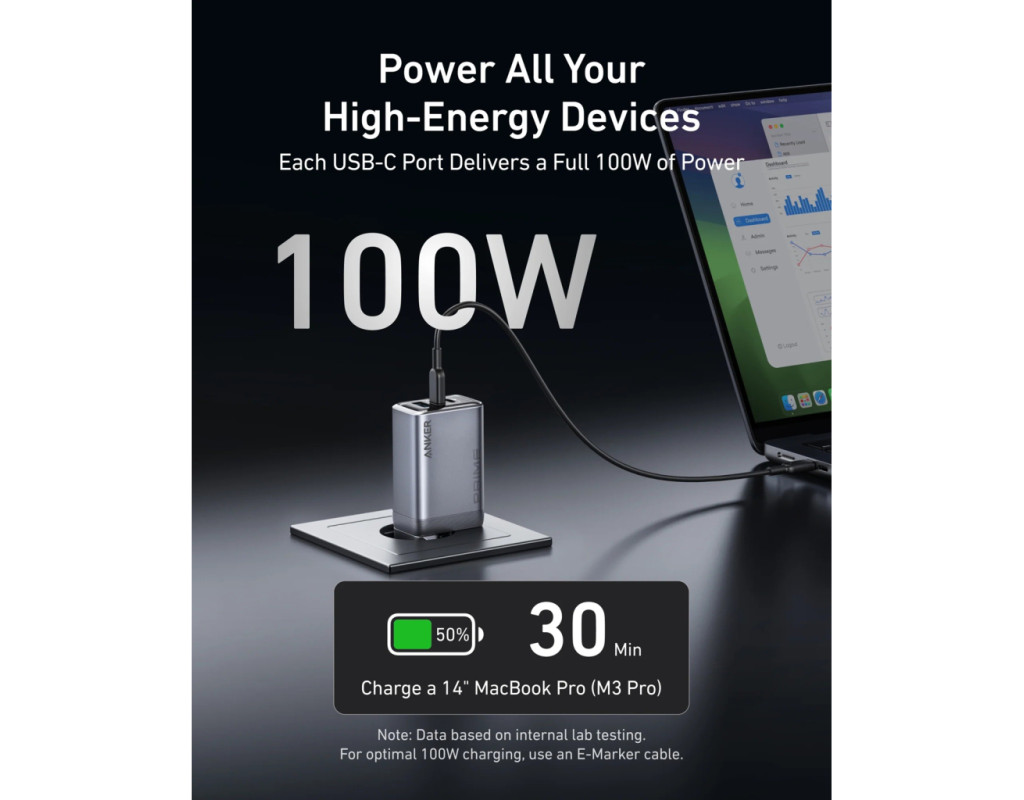 ANKER GaNPrime Charger - компактная мощность для ваших устройств! Быстрая зарядка трех устройств одновременно Максимальная эффективность USB-C Идеальный для путешествий Надежное подключение Anker GaNPrime - это флагманская серия зарядных устройств, созданная на основе новейшей технологии GaN (нитрид галлия), которая обеспечивает исключительную энергоэффективность, компактность и скорость зарядки. Благодаря комбинации инновационных решений PowerIQ™ 4.0 и ActiveShield™ 2.0, устройства GaNPrime автоматически адаптируются к каждому подключенному гаджету, обеспечивая максимально быструю, безопасную и сбалансированную зарядку: