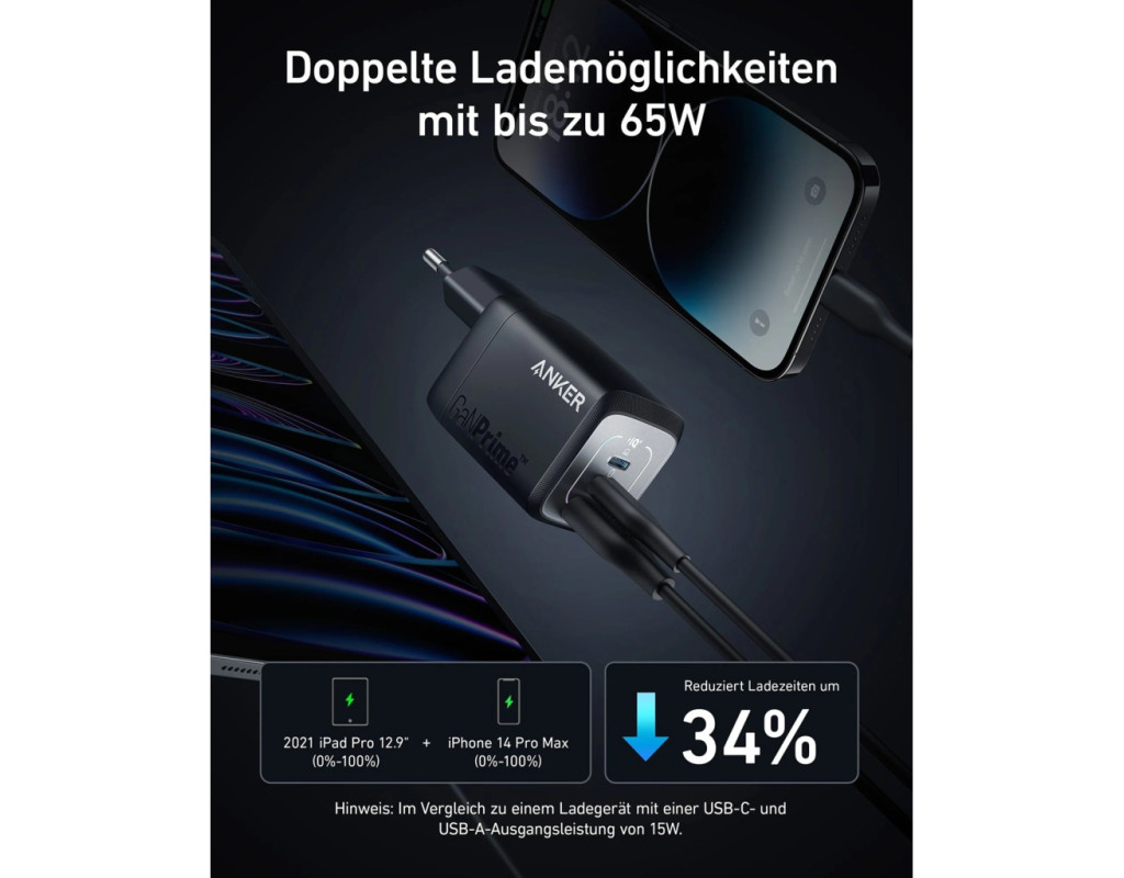 Одновременная зарядка трех устройств Высококачественная зарядка с GaNPrime™ Широкая совместимость |