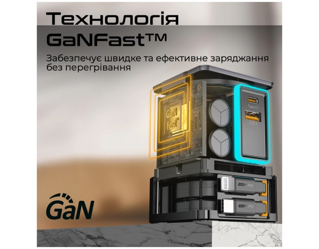 - Технология GaNFast: обеспечивает более быструю и эффективную зарядку без перегрева, что позволяет экономить время и энергию.