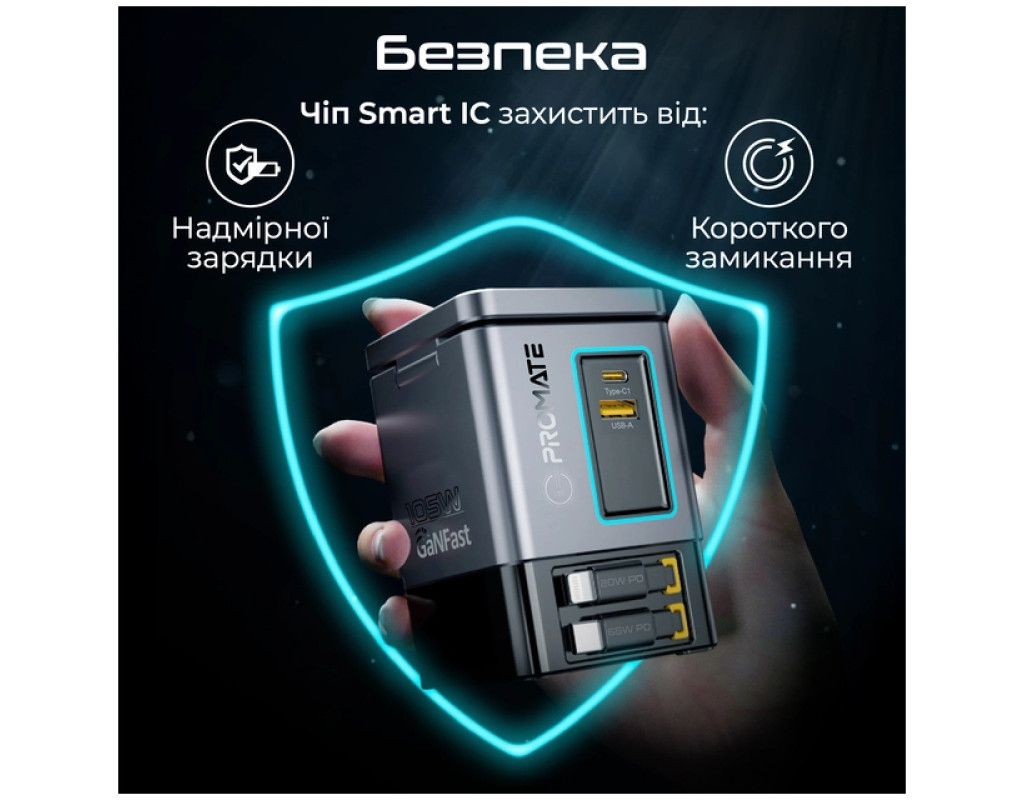 - Безопасность: Встроенный чип Smart IC защитит твои устройства от скачков напряжения, короткого замыкания и чрезмерной зарядки.