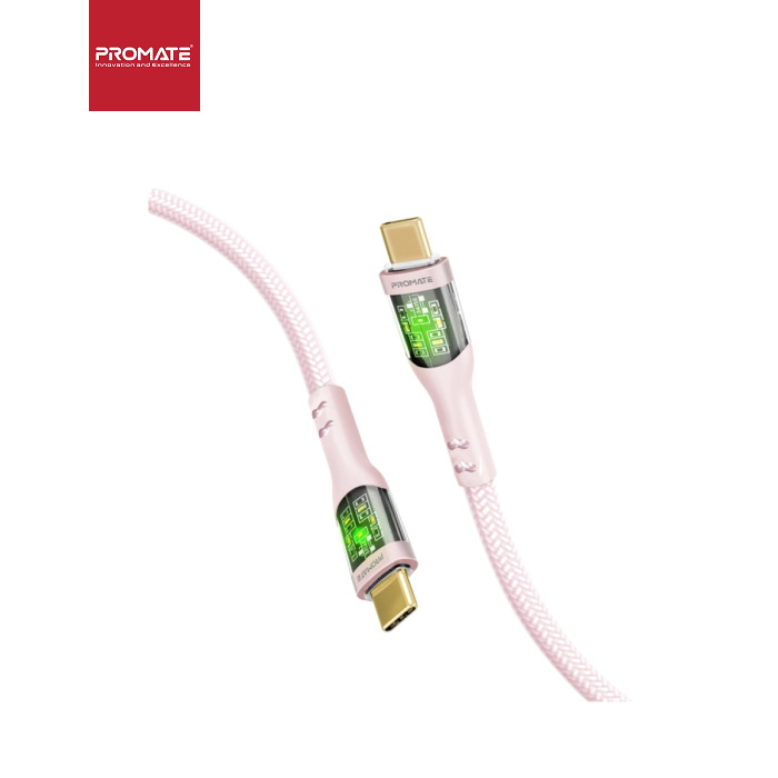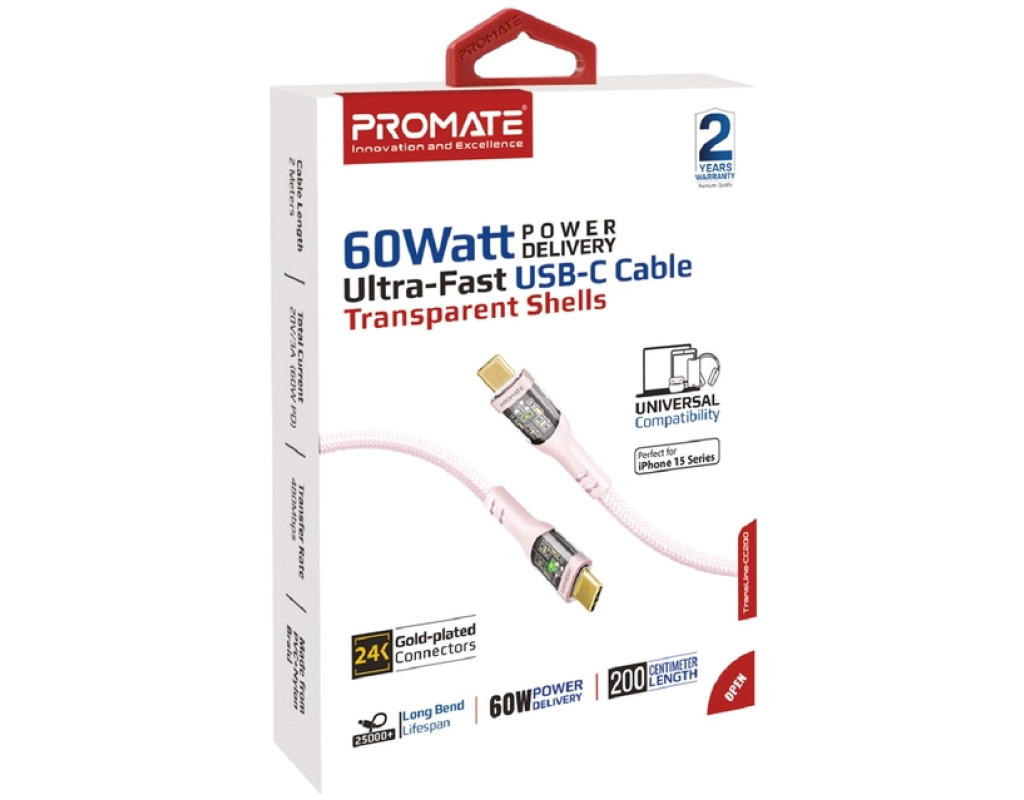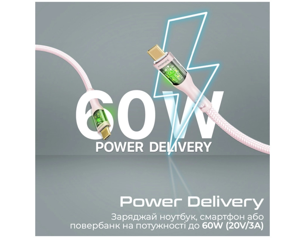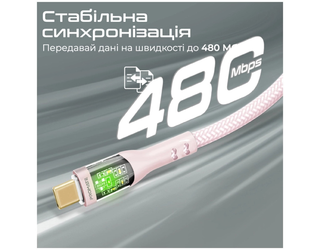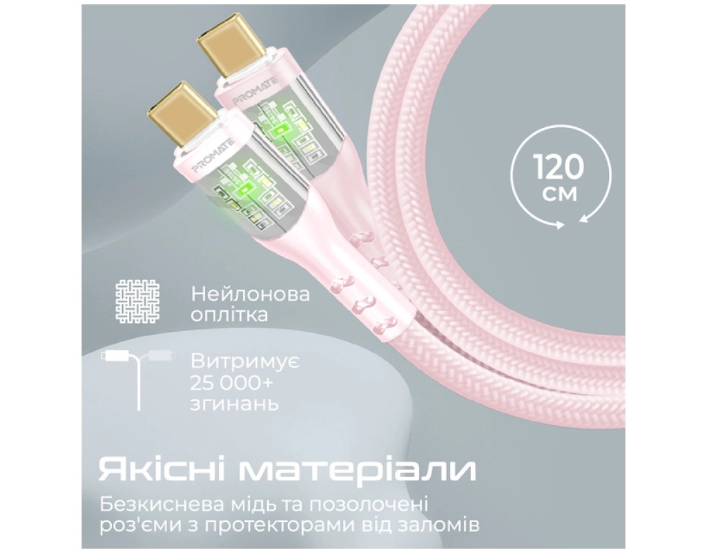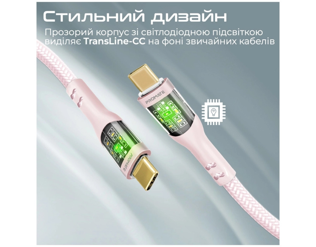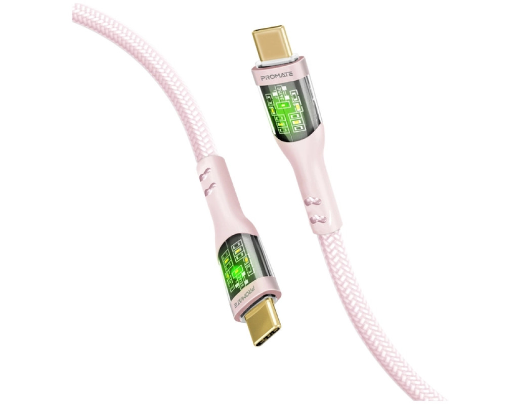 Дата кабель USB-C to USB-C 1.2m 60W PD TransLine-CC pink Promate (transline-cc.pink)