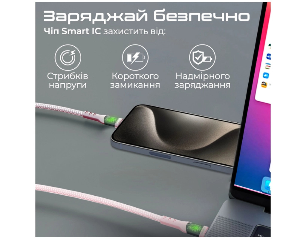 Тип - кабель, Тип коннектора 1 - USB Type-C, Тип коннектора 2 - USB Type-C, длина - 1.2 м, 60 W, Цвет - розовый