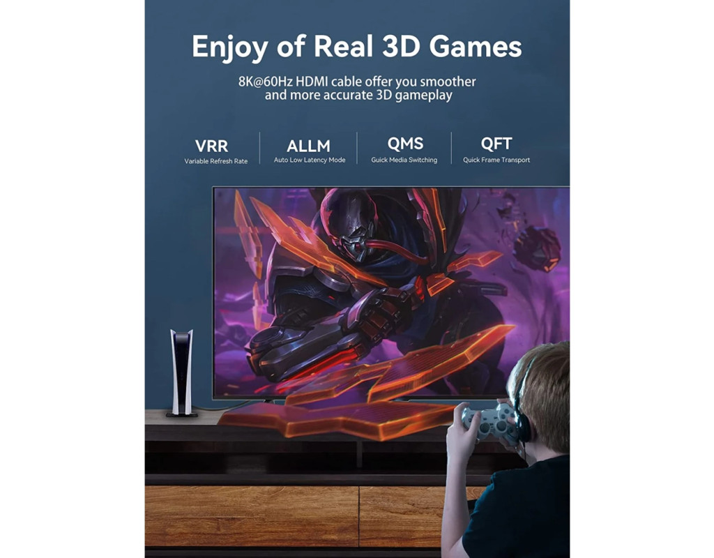 | Стандарт HDMI 2.1 Кабель последнего поколения Vention HDMI 2.1 (AAL) имеет 3-х кратное увеличение пропускной способности до 48 Гбит/с (по кабелям стандарта HDMI 2.0 с пропускной способностью до 18 Гбит/с), поддержкой разрешения 8K (7680х4320) Ultra HD , технологии обновления (VRR), динамического HDR и автоматической регулировки латентности. Стандарт HDMI 2.1 унаследовал от предыдущих стандартов HDMI все основные преимущества, в частности поддержку статического HDR, двух потоков видеоданных, четырех аудиоданных потоков, Ethernet-канала с пропускной способностью 100 Мбит/с, 3D-возможности, Blu-ray, а также поддержку более 8 каналов аудио Поддержка разрешения 8К (7680 х 4320 пикселей) Кабель Vention HDMI 2.1 обеспечивает более высокое разрешение и более высокую частоту кадров. Версия HDMI 2.1 даст нам 4K на 120 Гц, 8K на 60 Гц и даже 10K для коммерческих инсталляций. Также высокая частота кадров очень важна для геймеров. Изображение 3D Кабель поддерживает передачу 3D изображения, способного передать зрителю эффект глубины. Динамический HDR Расширенный динамический диапазон (HDR) – это важнейшее улучшение изображения со времен появления Full HD. Данный формат постоянно изменяет динамический диапазон картинки в зависимости от происходящего на экране, в результате чего мы получаем более точное, яркое и динамическое изображение. Кабель Vention HDMI 2.1 подходит для всех видов HDR, включая стандартный HDR10 и более современный Technicolor HDR. Функция eARC Стандарт HDMI eARC открывает возможность передавать аудио с телевизора на ресивер или саундбар и наоборот. В отличие от HDMI ARC, новый стандарт HDMI eARC позволяет не сжимать аудио, передавая его в высоком разрешении по HDMI 2.1. Такая функция обеспечивает возможность подключения любых устройств к телевизору и вывод сигнала по одному кабелю HDMI на ресивер или саундбар. Меньше кабелей – меньше путаницы, больше качественного звука! Функция VRR Кабель поддерживает функцию динамического изменения частоты обновления (Variable Refresh Rate), что позволяет устранить заикание и отставание путем синхронизации частот обновления с изменяющейся частотой кадров в видеоигре. Функция VRR делает движение дисплея более плавным, несмотря на разную частоту кадров. Широкая совместимость Кабель позволяет подключать любой источник видеосигнала к различным устройствам отображения, например телевизору, проектору или монитору. 3 режима отображения Кабель поддерживает 3 различных режима отображения: зеркальный, расширенный и многоэкранный. Индивидуальный и общий экран Индивидуальные экраны из фольги плюс общий экран с металлической оплеткой, надежно защищает от внешних и перекрестных помех. Позолоченные контакты и нейлоновая оплетка Кабель оснащен с двух сторон разъемами HDMI, покрытыми слоем золота для превосходной передачи данных и долговечности в эксплуатации. Также кабель имеет нейлоновую тканевую оплетку, что делает его эстетическим и износостойким. |
