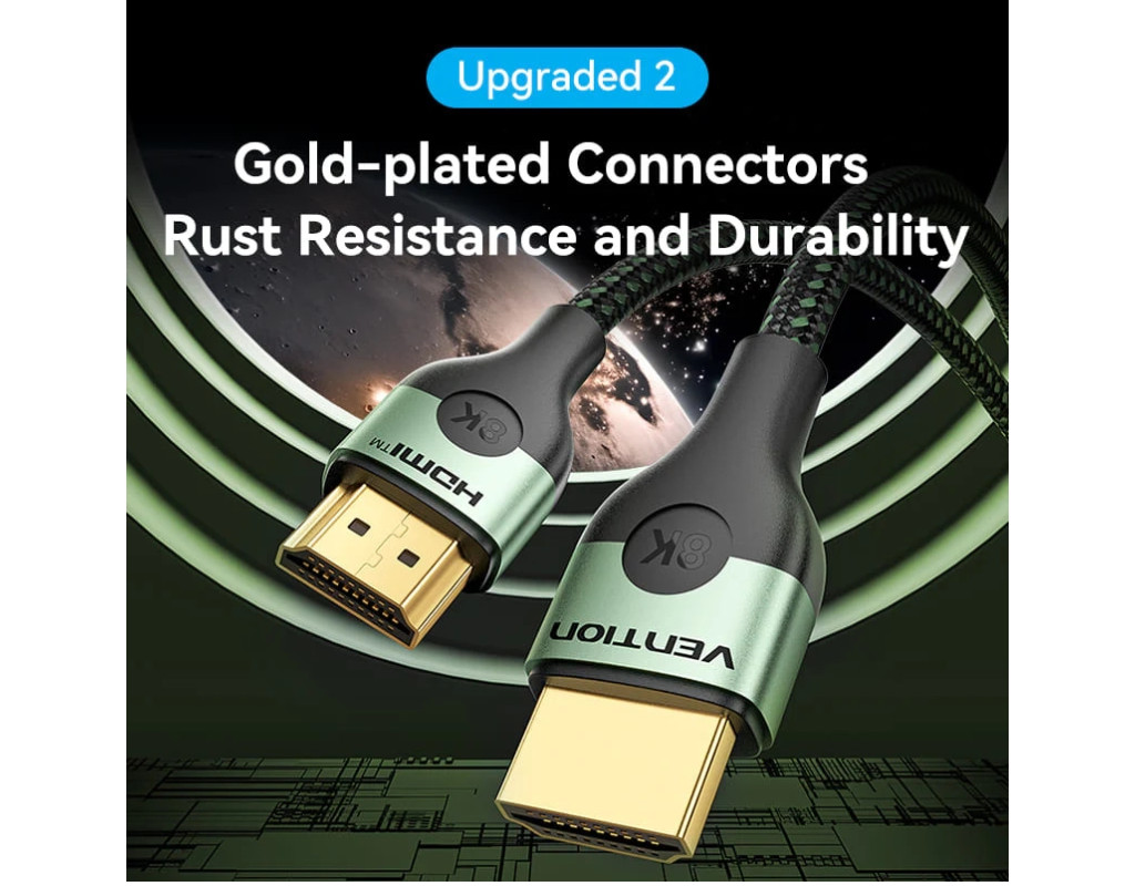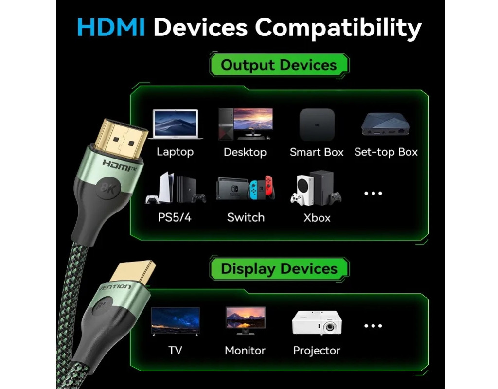 Кабель Vention HDMI 2.1 обеспечивает более высокое разрешение и более высокую частоту кадров. Версия HDMI 2.1 даст нам 4K на 120 Гц, 8K на 60 Гц и даже 10K для коммерческих инсталляций. Также высокая частота кадров очень важна для геймеров.