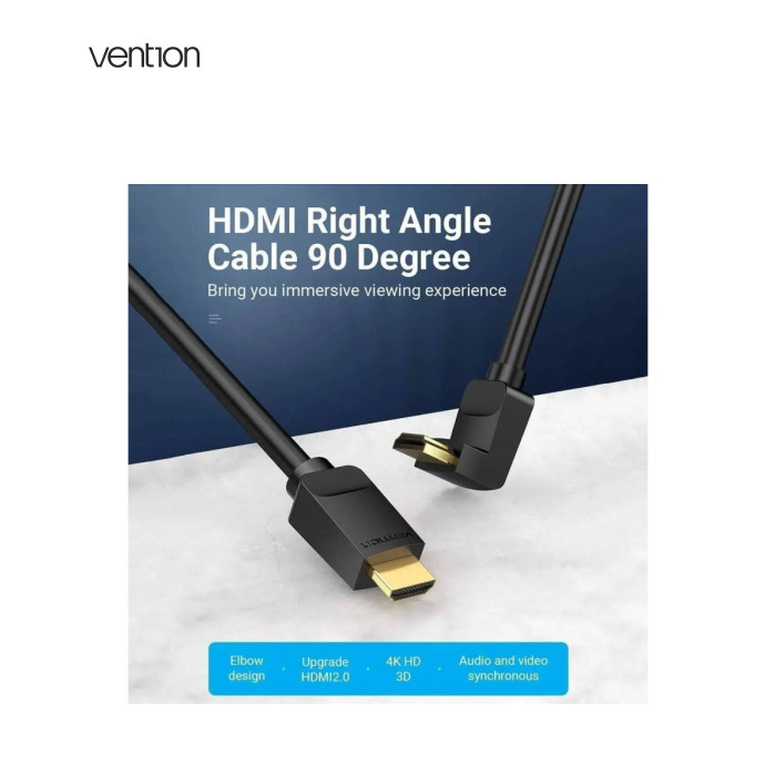| HDMI-кабель, оснащенный разъемом, расположенным под углом 90°. Это позволяет удобно подключать его даже в ограниченном пространстве.