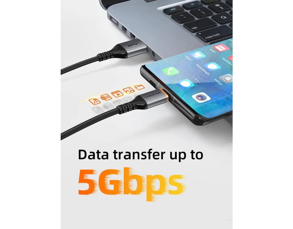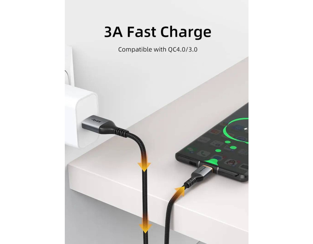 | CABLETIME USB - microUSB 3 A - это удобный и прочный кабель, который способен выдерживать нагрузку до 5 В / 3 A. Скорость передачи с данным кабелем достигает 5 Гб/с.