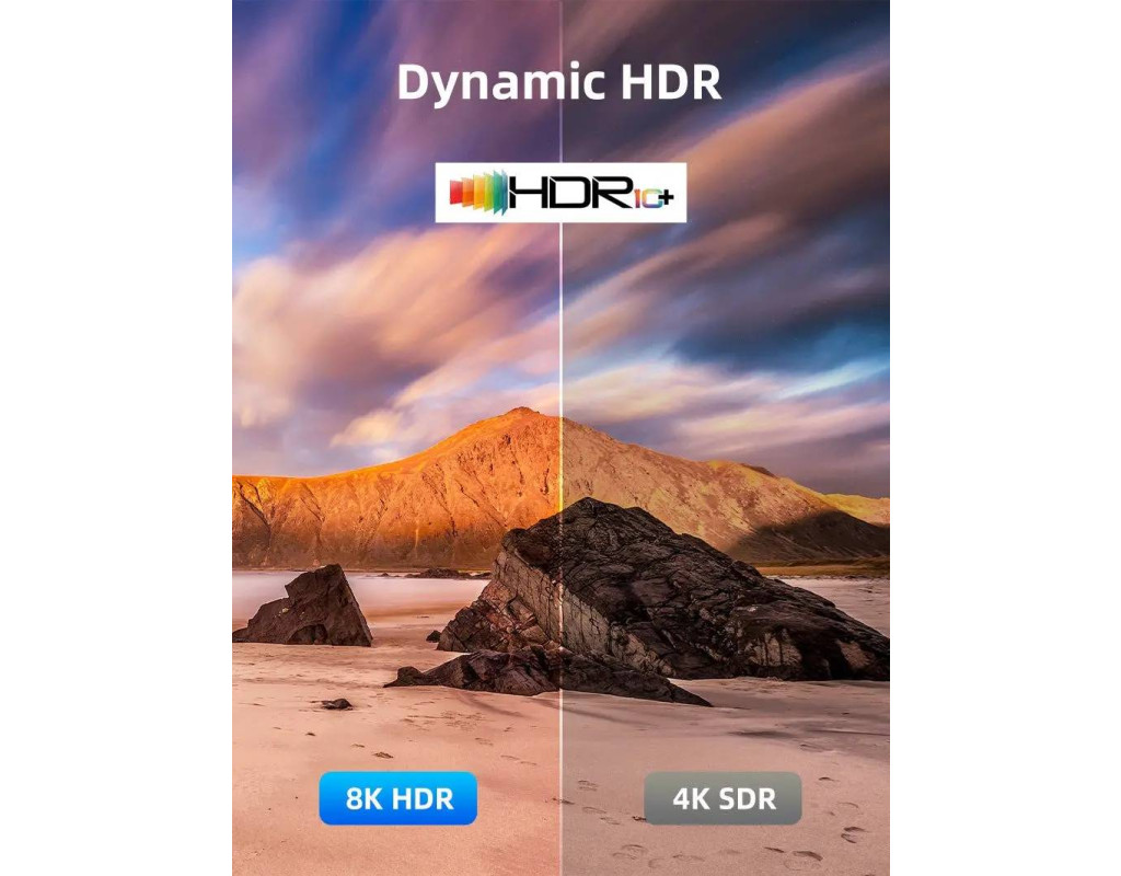 Стандарт HDMI 2.1 унаследовал от предыдущих стандартов HDMI все основные преимущества, в частности, поддержку статического HDR, двух потоков видеоданных, четырех аудиоданных потоков, Ethernet-канала с пропускной способностью 100 Мбит/с, 3D-возможности, Blu-ray, а также поддержку более 8 каналов аудио. Поддержка разрешения 8К (7680 х 4320 пискелей) Кабель Vention HDMI 2.1 обеспечивает более высокое разрешение и более высокую частоту кадров. Версия HDMI 2.1 даст нам 4K на 120 Гц, 8K на 60 Гц и даже 10K для коммерческих инсталляций. Также высокая частота кадров очень важна для геймеров. Изображение 3D Кабель поддерживает передачу 3D изображения, которое способно передать зрителю эффект глубины. Динамический HDR Расширенный динамический диапазон (HDR) - это самое важное улучшение изображения со времен появления Full HD. Данный формат постоянно меняет динамический диапазон картинки в зависимости от происходящего на экране, в результате чего мы получаем более точное, яркое и динамичное изображение. Кабель Vention HDMI 2.1 подойдет для всех видов HDR, включая стандартный HDR10 и более современный Technicolor HDR. Функция eARC Стандарт HDMI eARC открывает нам возможность передавать аудио с телевизора на ресивер или саундбар и наоборот. В отличие от HDMI ARC, новый стандарт HDMI eARC позволяет не сжимать аудио, передавая его в высоком разрешении по HDMI 2.1. Такая функция обеспечивает возможность подключения любых устройств к телевизору и выводить сигнал по одному кабелю HDMI на ресивер или саундбар. Меньше кабелей - меньше путаницы, больше качественного звука! Функция VRR Кабель поддерживает функцию динамического изменения частоты обновления (Variable Refresh Rate), что позволяет устранить заикание и отставание путем синхронизации частот обновления с переменной частотой кадров в видеоигре. Функция VRR делает движение дисплея более плавным, несмотря на разную частоту кадров. |