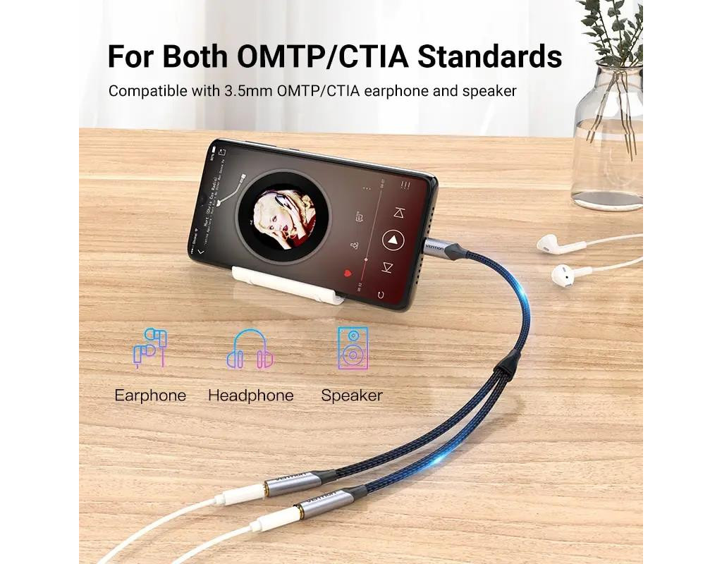 | Кабель Vention Audio – можно использовать на любом портативном устройстве, использующем 3,5 мм jack. Позволяет использовать более старые аудиоаксессуары с новыми компьютерами и гаджетами. С его помощью можно подключить микрофон и внешние динамики с отдельными штекерами. Специально для гарнитур с микрофоном |