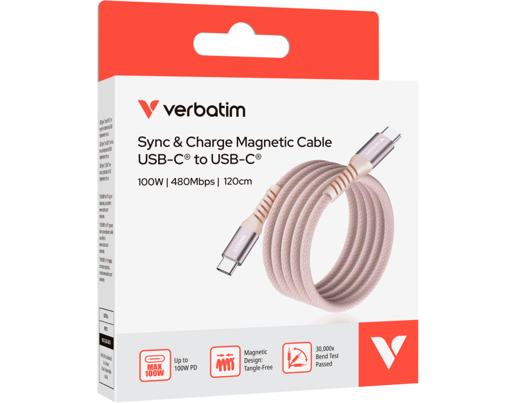 Дата кабель USB-C to USB-C 1.2m Magnetic 100W pink Verbatim (31857)