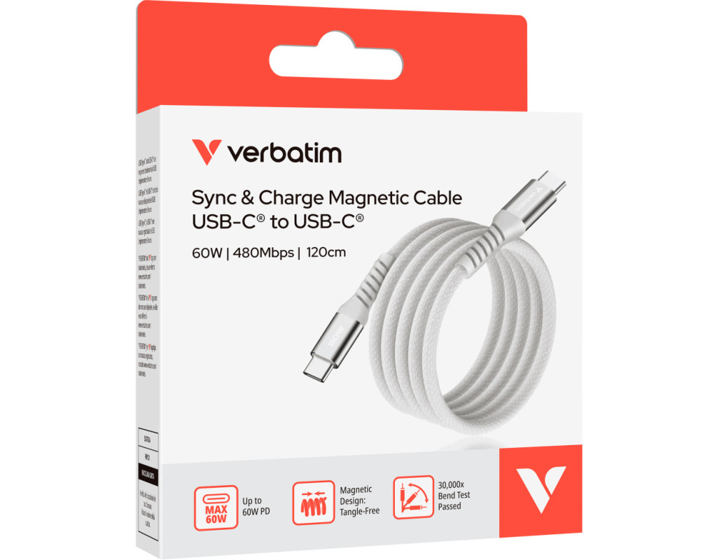 Дата кабель USB-C to USB-C 1.2m Magnetic 60W gray Verbatim (31850)