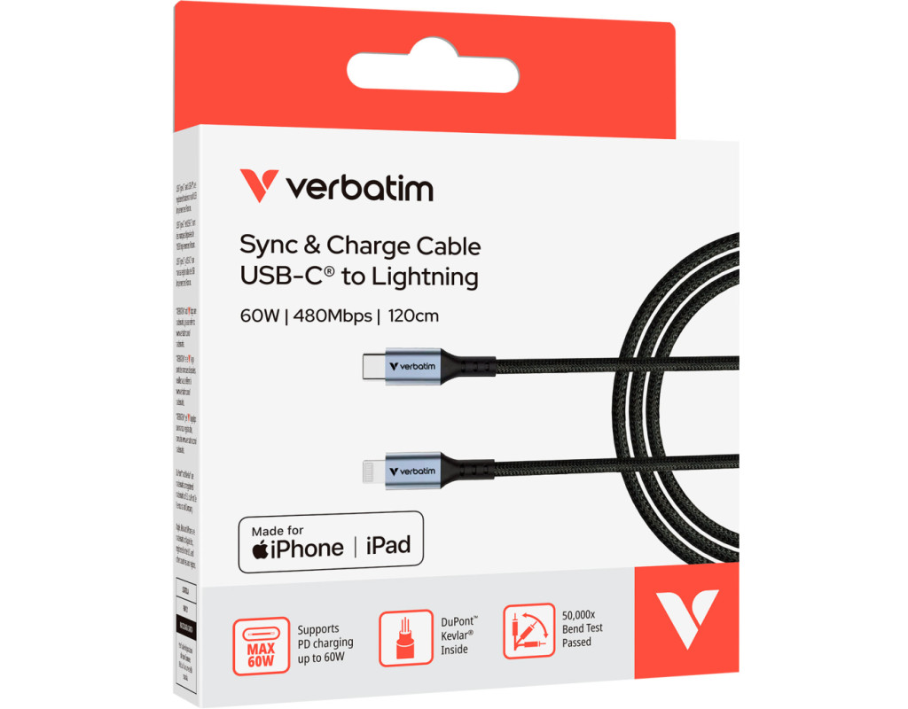 Дата кабель USB-C to Lightning 1.2m black Verbatim (31844)
