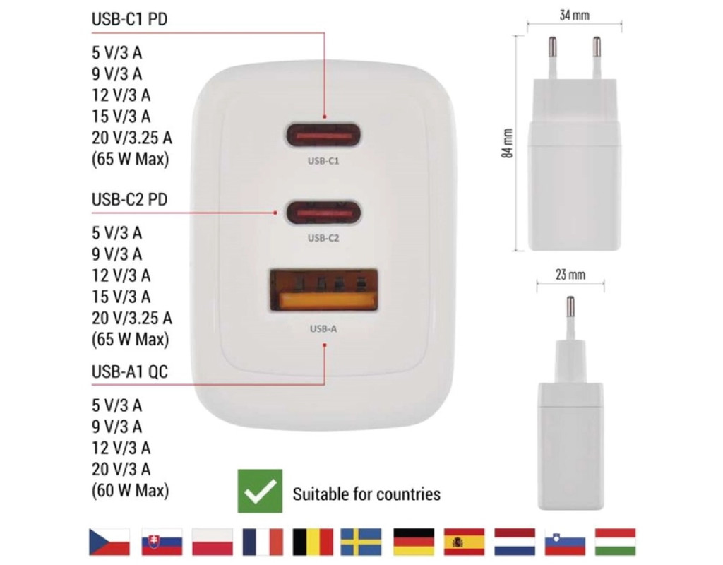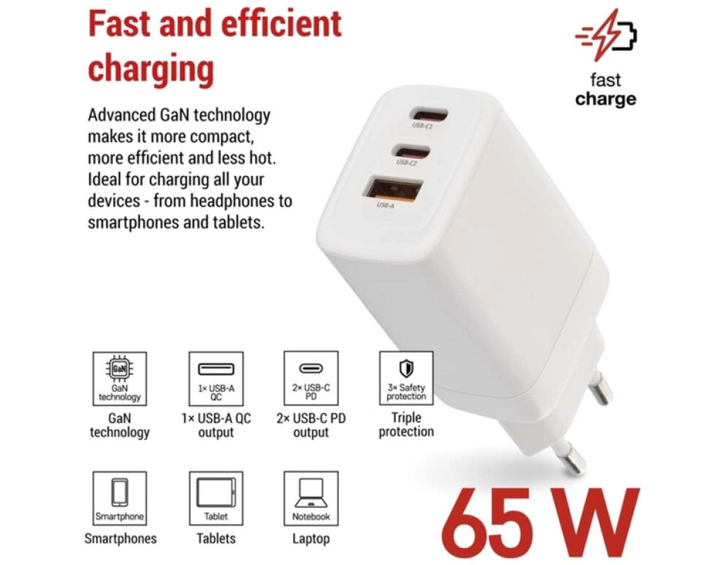 | Зарядное устройство EMOS V05G65 – это не просто обычный адаптер, а технологическое изобретение от чешского бренда Emos, созданное для удовлетворения потребностей современных пользователей. Благодаря своей универсальности оно идеально подходит для зарядки разнообразных устройств: смартфонов, планшетов, ноутбуков, смарт-часов, экшн-камер, фитнес-браслетов и даже радиостанций. Это зарядное устройство оснащено одним портом USB-A и двумя портами USB-C, что позволяет подключать одновременно до трех устройств. Благодаря использованию технологии GaN (нитрид галлия), EMOS V05G65 обеспечивает высокую эффективность, уменьшенное нагревание и компактность, что делает его идеальным для путешествий. Технология Power Delivery (PD) позволяет заряжать мощные девайсы с максимальной выходной мощностью до 65 Вт и током 3,25 А, что значительно ускоряет процесс зарядки. Это устройство является идеальной находкой для путешественников, ведь оно поддерживает входное напряжение 100–240 В~ 50/60 Гц, что делает его пригодным для использования по всему миру. С параметрами веса всего 134 г и размерами 34 × 94 × 23 мм зарядное устройство EMOS V05G65 легко поместится в любой сумке. Защита от перегрузок, перенапряжений и короткого замыкания гарантирует безопасность ваших гаджетов, сохраняя их в защищенном и надежном состоянии. Аккуратный белый цвет добавляет устройству эстетичности, а его продуманный дизайн – это сочетание мощности и компактности. EMOS V05G65 станет незаменимым аксессуаром для тех, кто ценит качество и надежность в каждом аспекте своей жизни. |