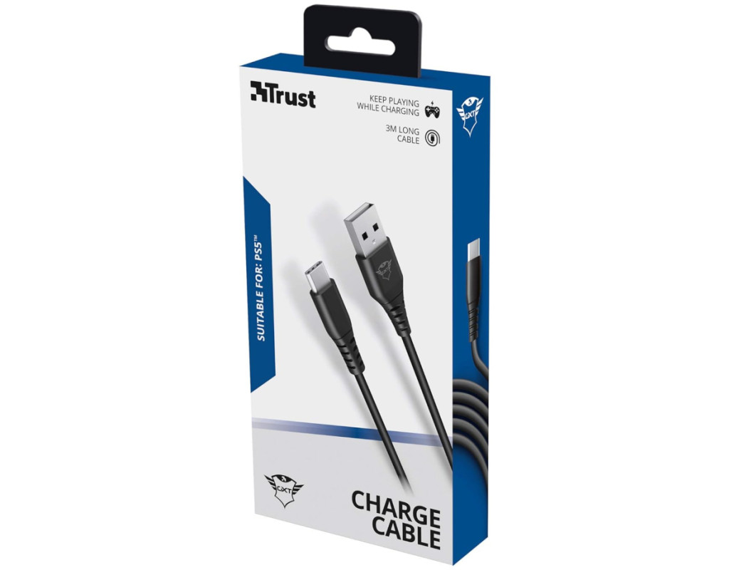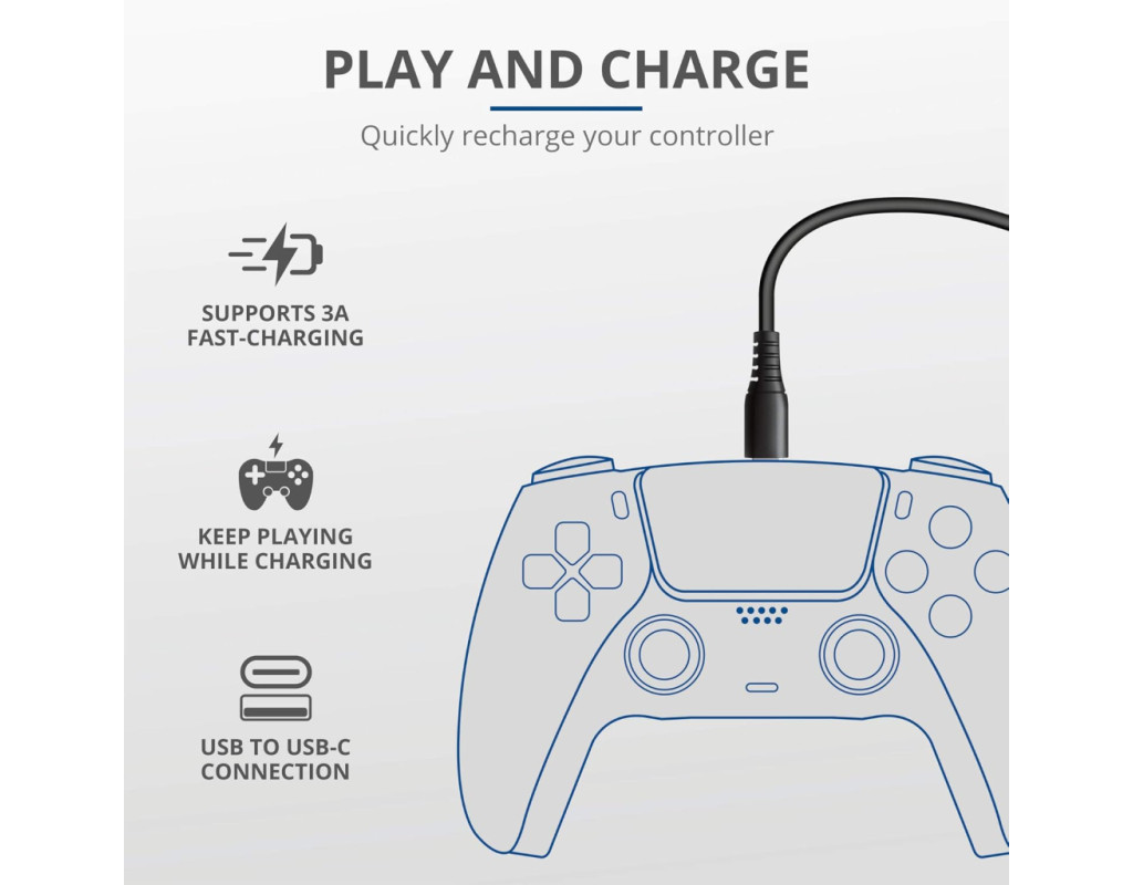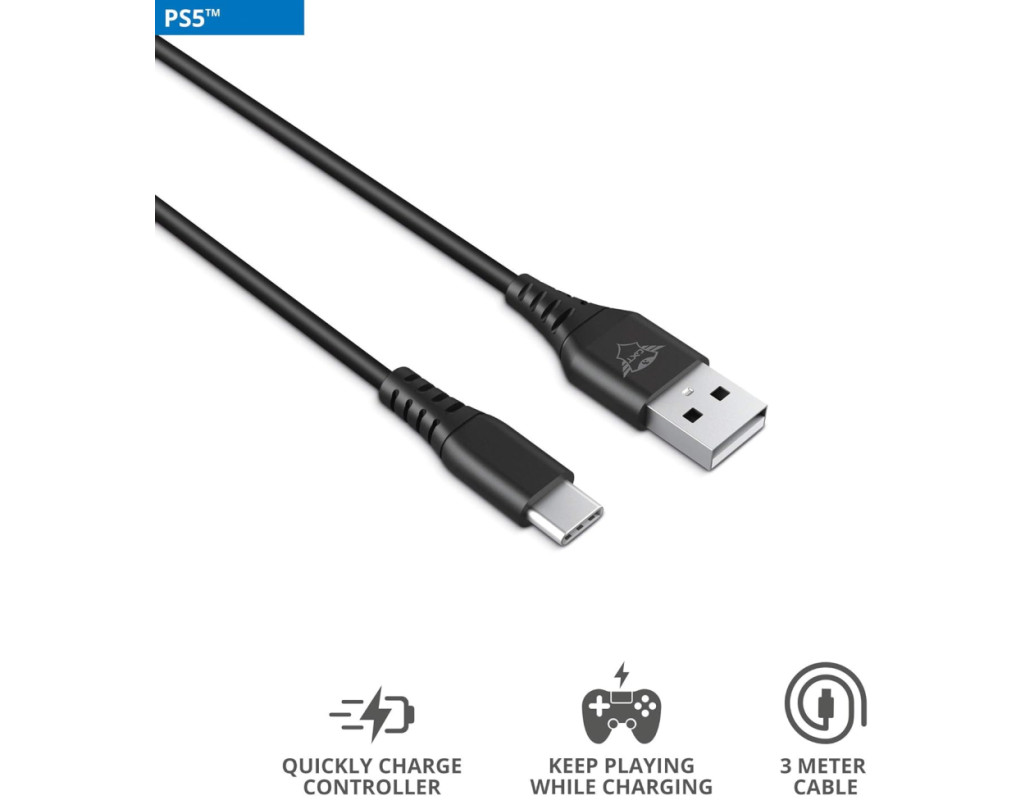 | The Trust GXT 226 Play & Charge cable is a 3-meter long accessory designed for charging and synchronizing the PlayStation 5 controller. |