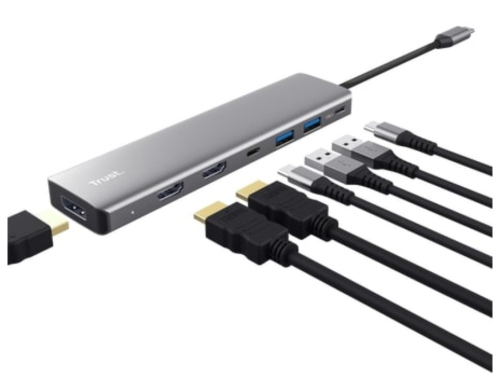 | Компактный и элегантный USB‑C хаб Trust Dalyx предлагает 7 портов в одном алюминиевом корпусе: 2× HDMI (до 4K@30 Гц с HDR), 1× DisplayPort, 2× USB‑A 3.2, 1× USB‑C для данных и 1× USB‑C с поддержкой Power Delivery до 100 Вт. Идеален для современных ноутбуков: расширяет функционал через один кабель длиной 16 см. Прочный, лёгкий и стильный — идеален для работы в пути. |