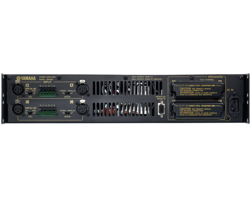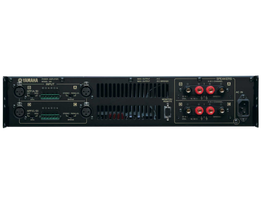Четыре канала в одном усилителе XM4080 обеспечивает четыре отдельных канала усиления мощности, объединенных в одном удобно управляемом устройстве. Работа в режиме стерео, параллельном и мостовом режимах Три режима работы можно выбрать при необходимости: стереорежим использует все четыре канала усилителя, в параллельном режиме два моноисточника подаются на двойные усилители, а при применении мостовой схемы два канала работают как один мощный моно усилитель, что позволяет получить два мощных усилителя в одном устройстве. Режим выбирается с помощью переключателя на задней панели. Универсальные возможности подключения входов и выходов Используются два типа входных разъемов: балансные XLR и Euroblock, обеспечивающие простое и надежное подключение. Подключение выходов осуществляется с помощью 5-жильных клемм. Также применяется фильтр среза низких частот с возможностью выбора частоты среза (20 Гц или 55 Гц). Точные аттенюаторы и независимые индикаторы для каждого канала позволяют настраивать уровни и следить за их состоянием. Разъем Monitor/Remote На задней панели расположен разъем Monitor/Remote, используемый для подключения внешнего устройства, с которого осуществляется мониторинг и управление усилителем. |