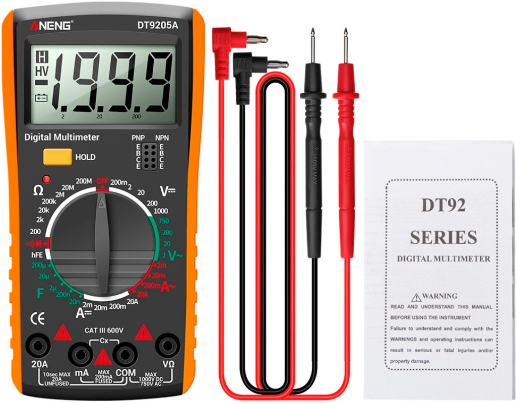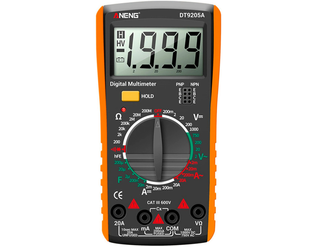 емкость (С), напряжение (V), прозвон цепи, сопротивление (R), тестирование диодов, тестирование транзисторов, ток (А) |