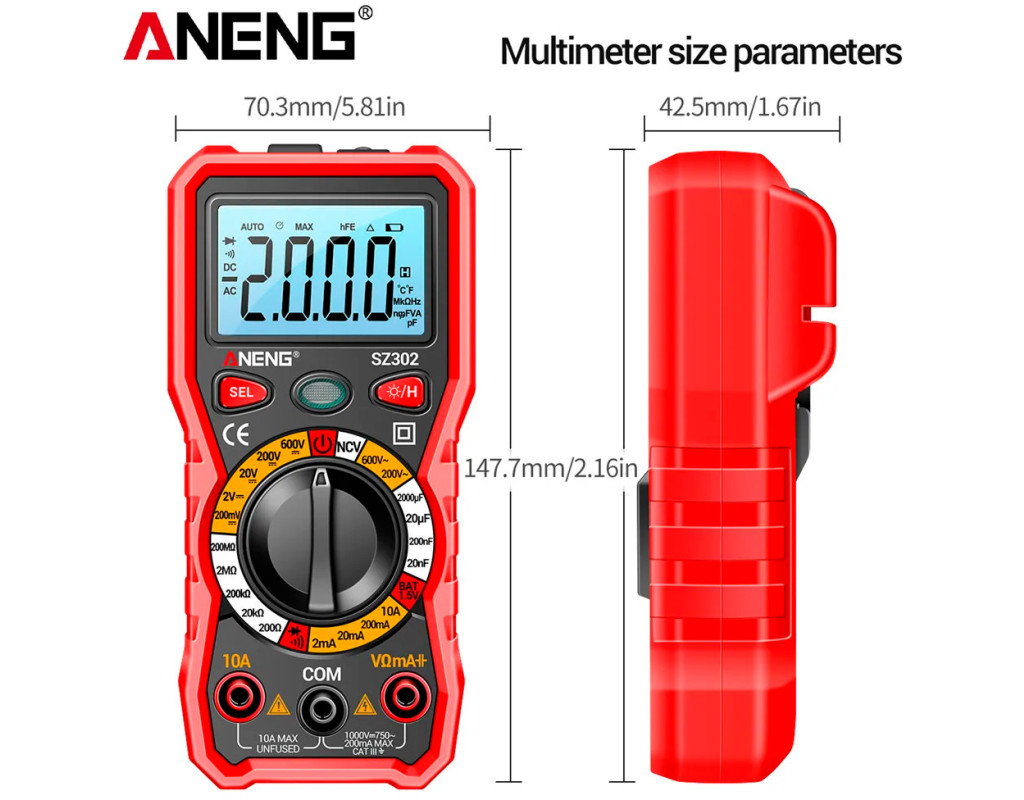 емкость (С), напряжение (V), прозвон цепи, сопротивление (R), ток (А), функция NCV |