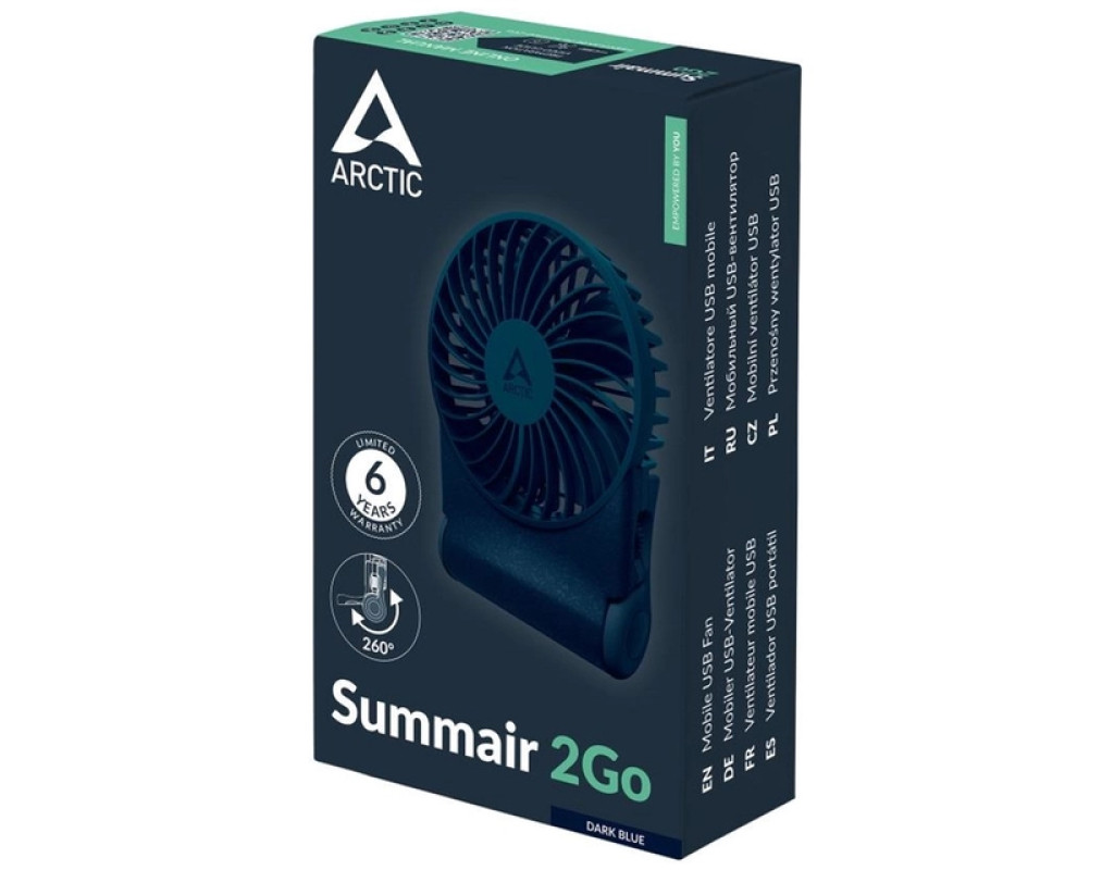 Настольный вентилятор со встроенным аккумулятором ARCTIC USB-C SUMMAIR 2GO Долговечный Сменный аккумулятор емкостью 5000 мАч обеспечивает время работы до 77 часов. Практический Благодаря удобному дизайну и компактным размерам, Summair 2Go является идеальным компаньоном для путешествий - всегда готов к использованию и легко транспортируется. Мощный Summair 2Go создает тихий ветерок на низкой скорости и сильный поток воздуха на максимальной мощности. Продуманный дизайн Summair 2Go сочетает вентилятор ARCTIC с оптимизированным воздушным потоком и аккумулятор с длительным сроком службы, что обеспечивает надежное охлаждение даже в пути. Проверенный опыт Разработанный на основе более чем 20-летнего опыта в области вентиляторов, он предлагает ожидаемое качество и надежность ARCTIC – так же, как и наши высококачественные вентиляторы для ПК и серверов. Надежная подставка Вентилятор Summair 2Go имеет прорезиненную складную ножку, которая обеспечивает стабильную опору даже на щекотливых поверхностях, не оставляя царапин. Удобное использование Summair 2Go имеет эргономичную форму, а его поверхность имеет незаметную текстуру, что обеспечивает надежный и постоянный захват даже во время движения. |
