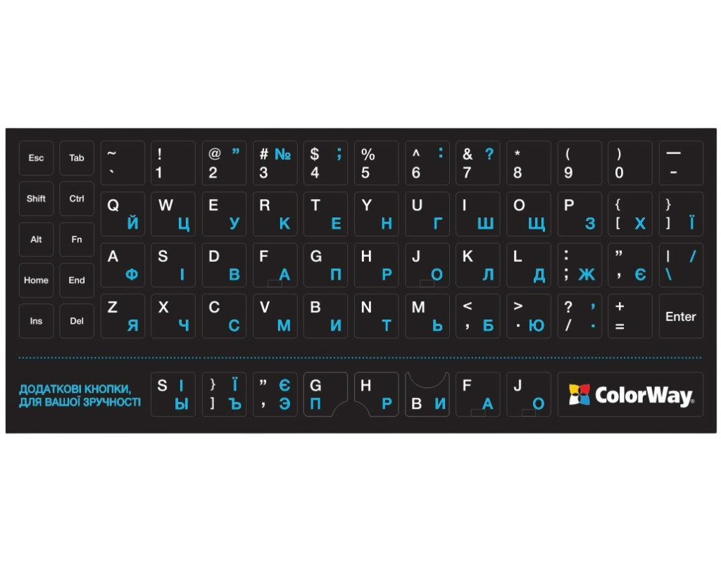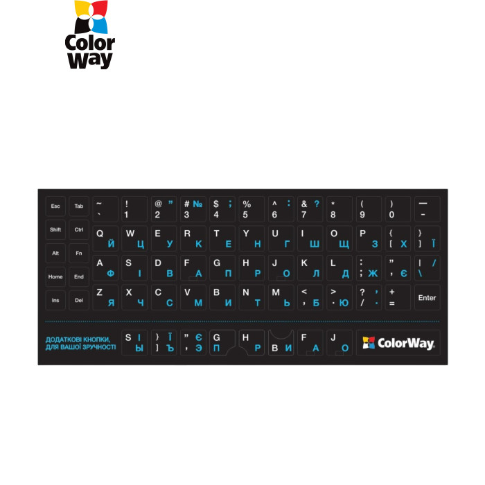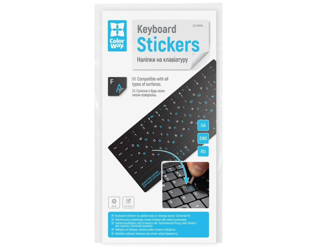 | Непрозрачные наклейки ColorWay — это практичное решение для тех, кто работает с несколькими языками или хочет быстро обновить внешний вид клавиш.