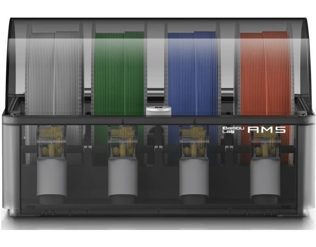 Как и у принтера предыдущей генерации , у нового X1-Carbon Combo просторный рабочий объем и высокая скорость печати. Он применяет передовые технологии, способствующие точности печати и плавности линий. В комплект также входит Автоматическая Материальная Система (AMS) для хранения и автоматической замены катушек с пластиком. Вы можете быть уверены, что принтер всегда печатает только качественными материалами и можете заняться другими делами, не беспокоясь о наличии нити в экструдере. Независимо от того, печатаете ли вы сложные модели, пресс-формы или прототипы, этот принтер каждый раз обеспечивает потрясающие результаты. Автоматическая материальная система AMSПокупая принтер Bambu Lab X1 версии Combo, вы получите в комплекте Автоматическую Систему обработки Материалов (AMS), позволяющую беспрепятственно печатать разными цветами и материалами. Основные характеристики AMS: