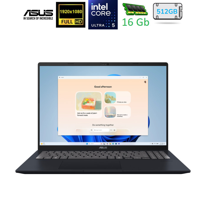 ASUS Vivobook 16 – идеальный помощник по ежедневным делам. Благодаря современному процессору Intel Core Ultra (Series 2) он справится с любыми задачами как настоящий профессионал. Его потрясающий 16-дюймовый IPS-дисплей с соотношением сторон 16:10 и разрешением Full HD отображает все в мельчайших деталях. Элегантный современный дизайн, удобная и тихая клавиатура ASUS ErgoSense, просторный тачпад с поддержкой интеллектуальных жестов и надежный шарнир, позволяющий раскрывать экран ноутбука на 180 ° , сделают ваши рабочие будни и развлечения более эффективными и приятными. Кроме того, благодаря первоклассным функциям безопасности и тестированию в соответствии с требованиями военного стандарта, вы можете быть спокойны, зная, что ваш ноутбук так же надежен, как и умный. Сделайте свою повседневную жизнь ярче с ASUS Vivobook 16! Большое экранное пространство Великолепная автономностьПодготовка ASUS Vivobook 16 к новым делам не отнимет много времени: технология ускоренной зарядки обеспечивает рост уровня заряда аккумулятора от 0 до 60% всего за 49 минут! Совершенство в каждой деталиASUS Vivobook 16 оснащен широким набором интерфейсных портов. Он предлагает по два порта USB 3.2 Gen 1 Type-A и USB 3.2 Gen 1 Type-C с поддержкой быстрой зарядки, выход HDMI и комбинированный аудиоразъем. Кроме того, благодаря модулю Wi-Fi 6 вы сможете беспрепятственно воспользоваться облачными сервисами искусственного интеллекта. Эргономичный дизайнКлавиатура ASUS ErgoSense является тихой и невероятно приятной на ощупь с оптимальной отдачей и ходом клавиш, рассчитанными с высокой точностью. Больше комфортаИнтеллектуальные жесты ASUS Smart Gesture позволяют регулировать громкость звука, яркость изображения, прокручивать временную шкалу и многое другое всего одним касанием! Тачпад с гладкой поверхностью разработан для комфортной работы. На него с помощью метода физического осаждения из паровой фазы (PVD) нанесено высокотехнологичное гидрофобное покрытие, которое предотвращает появление следов от пальцев и придает тачпаду большую стойкость к износу. Новый взгляд на аудиосистему ноутбукаАудиосистема этого ноутбука разработана в сотрудничестве с экспертами компании Dirac, известного производителя профессиональных аудиорешений. Она обеспечивает наиболее чистое и сбалансированное звучание, которое вы когда-нибудь слышали на ПК, ноутбуке или планшете. Раскройте весь потенциал аудиосистемы ноутбука и наслаждайтесь более широким и глубоким звуковым ландшафтом. Новый взгляд на аудиосистему ноутбукаASUS Audio Booster использует уникальные аудиоалгоритмы, чтобы повысить громкость звука до 1,5 раза и вывести звучание на новый уровень. Реалистичное звучаниеVivobook 16 воспроизводит более чистое и качественное звучание, чем обычный ноутбук, особенно на низких частотах. Больше возможностей для видеозвонковВ видеосвязи может участвовать не только один, но и несколько докладчиков, расположенных вокруг одного ноутбука. Усовершенствованная система, которую можно включить в MyASUS, определяет направления источников звука и оптимизирует громкость, что обеспечивает наилучшее качество звука во время видеовызовов. Качественная вебкамера с технологией ASUS 3DNRТехнология ASUS 3D Noise Reduction (3DNR) способна значительно улучшать качество изображения, полученного с помощью вебкамеры. Соответствие военному стандарту СШАЭтот ноутбук отличается повышенной надежностью, по