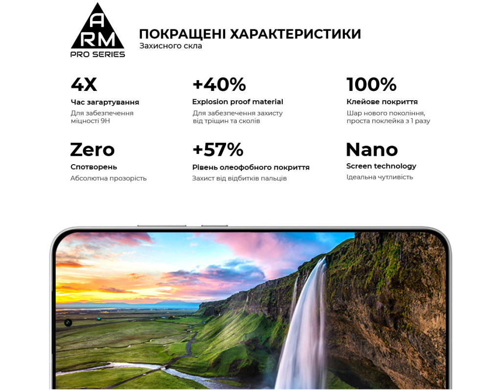 Захисне скло Armorstandart Pro Series - це абсолютно новий рівень захисту дисплея смартфона. У виробництві використовується матеріал Japenese Asahi Glass, який проходить загартування впродовж 4 годин. Це забезпечує ідеальну прозорість захисного покриття без спотворень зображення, а також потужний захист від тріщин і подряпин. Скло ніяк не впливає на чуйність тачскрина. У ньому міститься спеціальний матеріал, що перешкоджає появі відколів. Верхня частина скла містить покращене олеофобне й гідрофобне покриття. Під час використання скла це забезпечує природні тактильні відчуття - пальці легко ковзають по поверхні. Водночас зображення відбивається з автентичною яскравістю й чіткістю без спотворень. Задня частина по всій площі покрита клейовою основою нового покоління. Завдяки цьому досягається повний брак пухирців і можливість переклеювання скла в разі первісного нерівного встановлення. Захисне скло Armorstandart Pro Series має оптимальні габарити та товщину на 0,3 мм. Передбачено вирізи під усі датчики, камери та роз'єми. До комплекту входить усе потрібне для швидкого та комфортного встановлення. Особливості:
