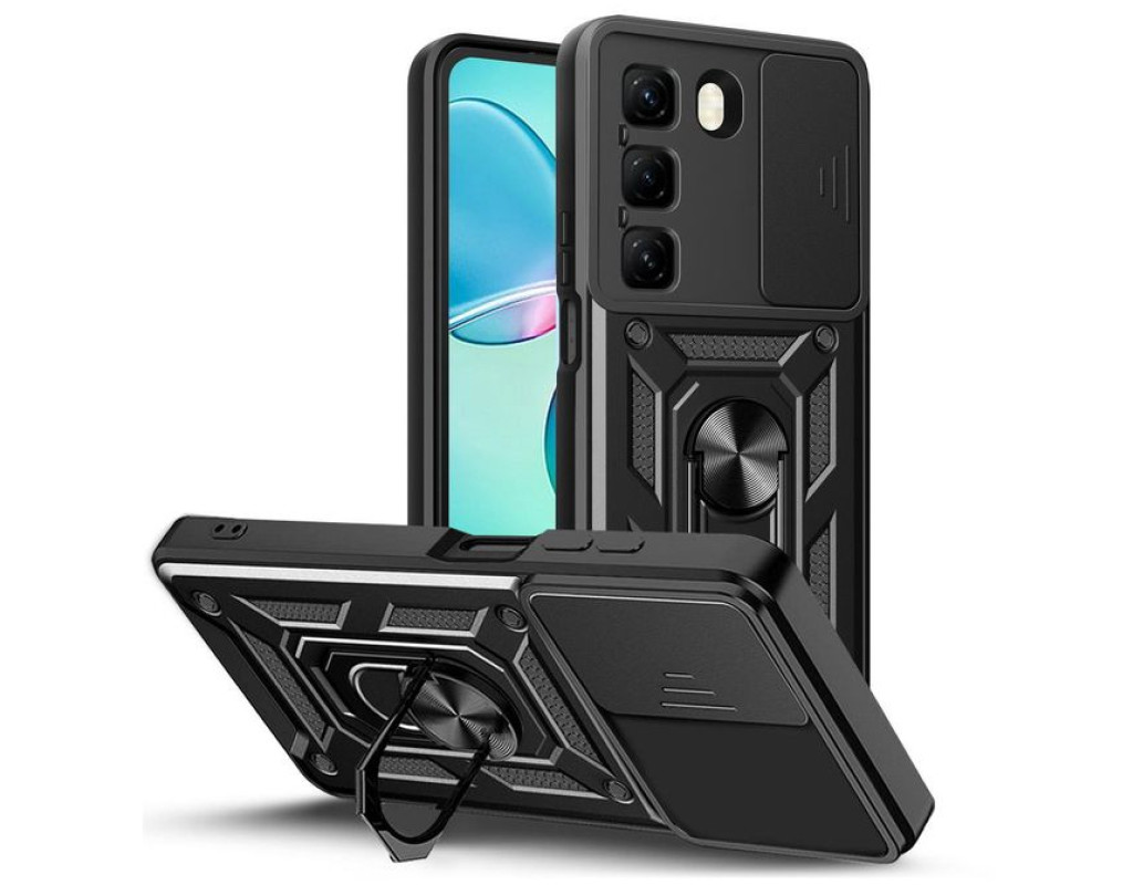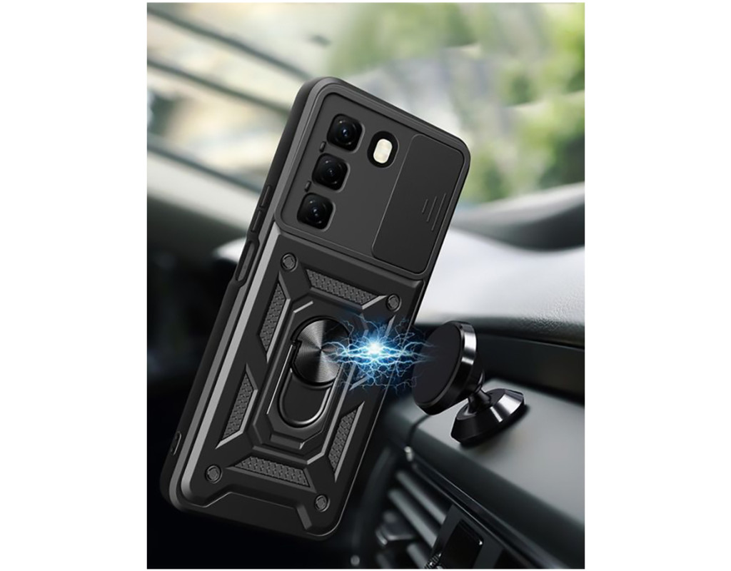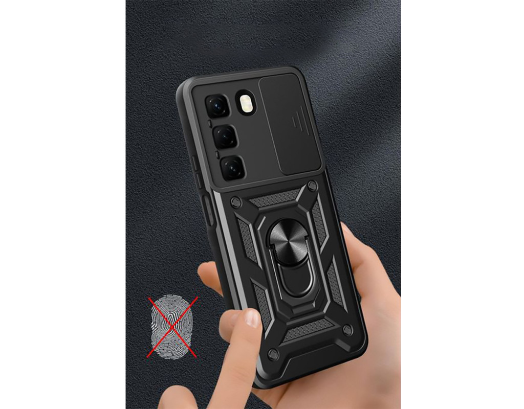 | "Протиударний чохол Military BeCover надійно захищений від будь-яких екстремальних та форс-мажорних ситуацій. Гнучка силіконова панель має жорсткий металізований корпус та кільце-підставку для пальця. Чохол здатний витримати навіть сильні удари та подряпини. Вбудований регульований кронштейн для кільця: кільце, що обертається на 360°, знімається або висувається як підставка, щоб звільнити руки. Це дозволить вам використовувати кільце як підставку для гаджета, використовуючи свій смартфон під час перегляду відео, роблячи фото або користуючись Інтернетом. Чохол приємний на дотик, має протиковзне покриття проти поту та відбитків пальців. М'який тонкий матеріал не пошкоджує мобільний телефон, він ударостійкий і піднятий, утворюючи борти, щоб захистити камеру та екран. Конструкція сумісна з магнітним тримачем (не включаючи магнітне автомобільне кріплення): у цьому випадку може надійно утримувати магнітне автомобільне кріплення та вільно обертатися (не сумісне з бездротовою зарядкою)." |