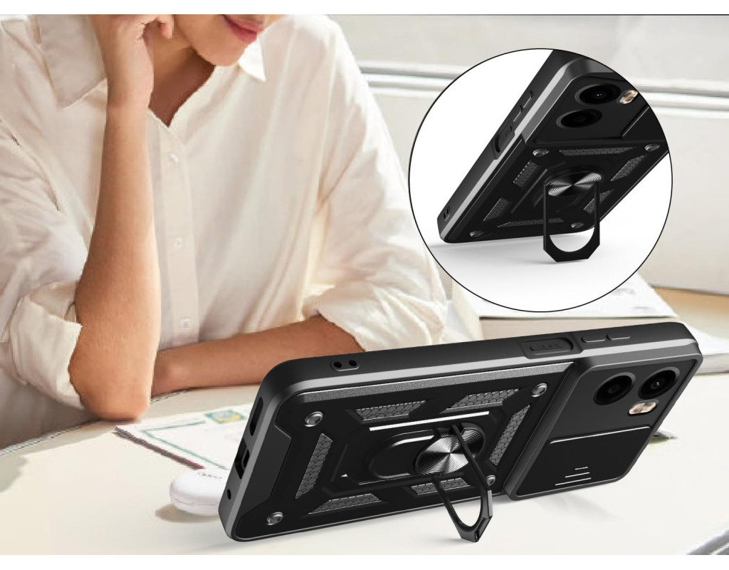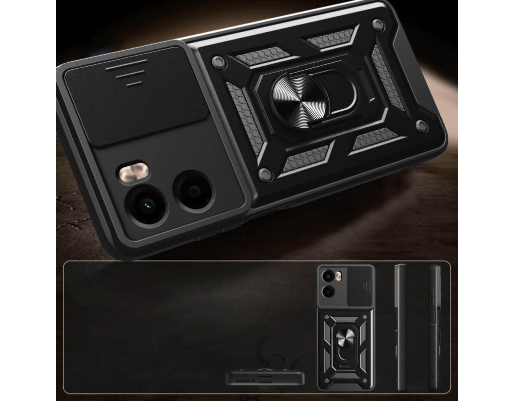 | Протиударний чохол Military BeCover надійно захищений від будь-яких екстремальних та форс-мажорних ситуацій. Гнучка силіконова панель має жорсткий металізований корпус та кільце-підставку для пальця. Чохол здатний витримати навіть сильні удари та подряпини. Вбудований регульований кронштейн для кільця: кільце, що обертається на 360°, знімається або висувається як підставка, щоб звільнити руки. Це дозволить вам використовувати кільце як підставку для гаджета, використовуючи свій смартфон під час перегляду відео, роблячи фото або користуючись Інтернетом. Чохол приємний на дотик, має протиковзне покриття проти поту та відбитків пальців. М'який тонкий матеріал не пошкоджує мобільний телефон, він ударостійкий і піднятий, утворюючи борти, щоб захистити камеру та екран. Конструкція сумісна з магнітним тримачем (не включаючи магнітне автомобільне кріплення): у цьому випадку може надійно утримувати магнітне автомобільне кріплення та вільно обертатися (не сумісне з бездротовою зарядкою)." |