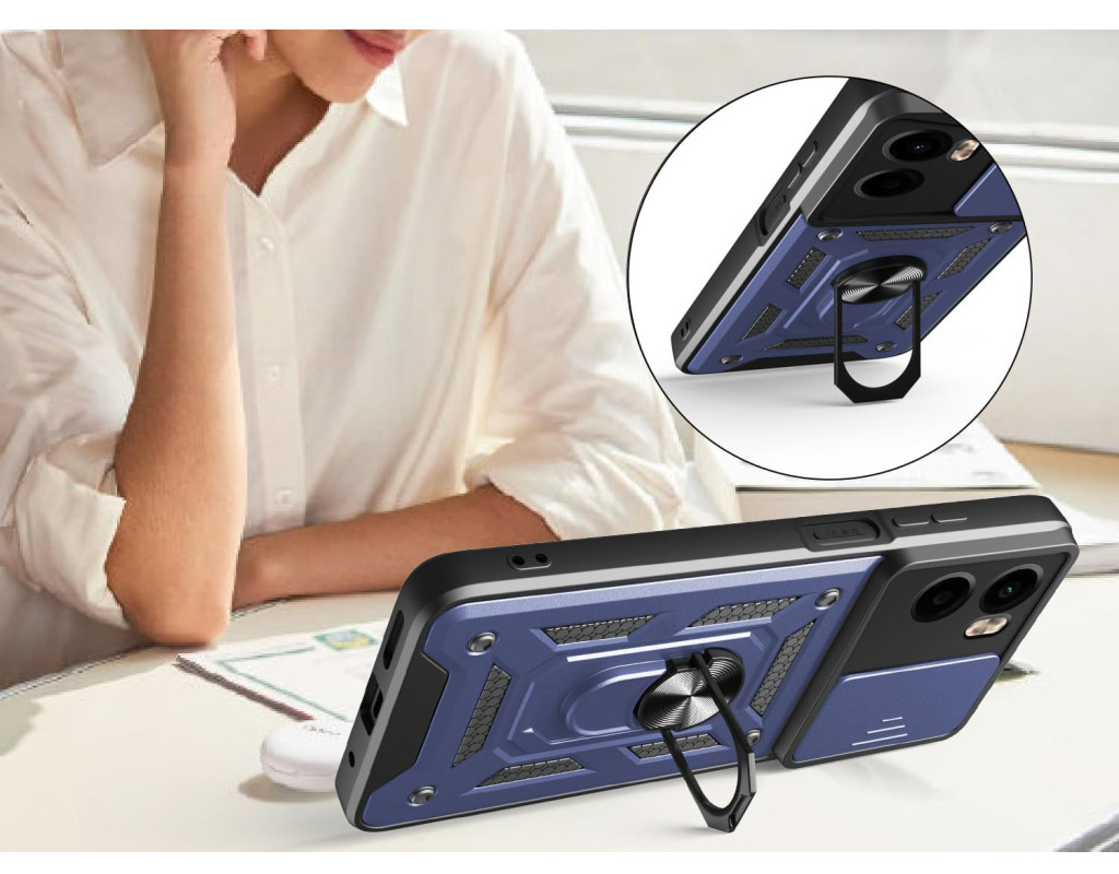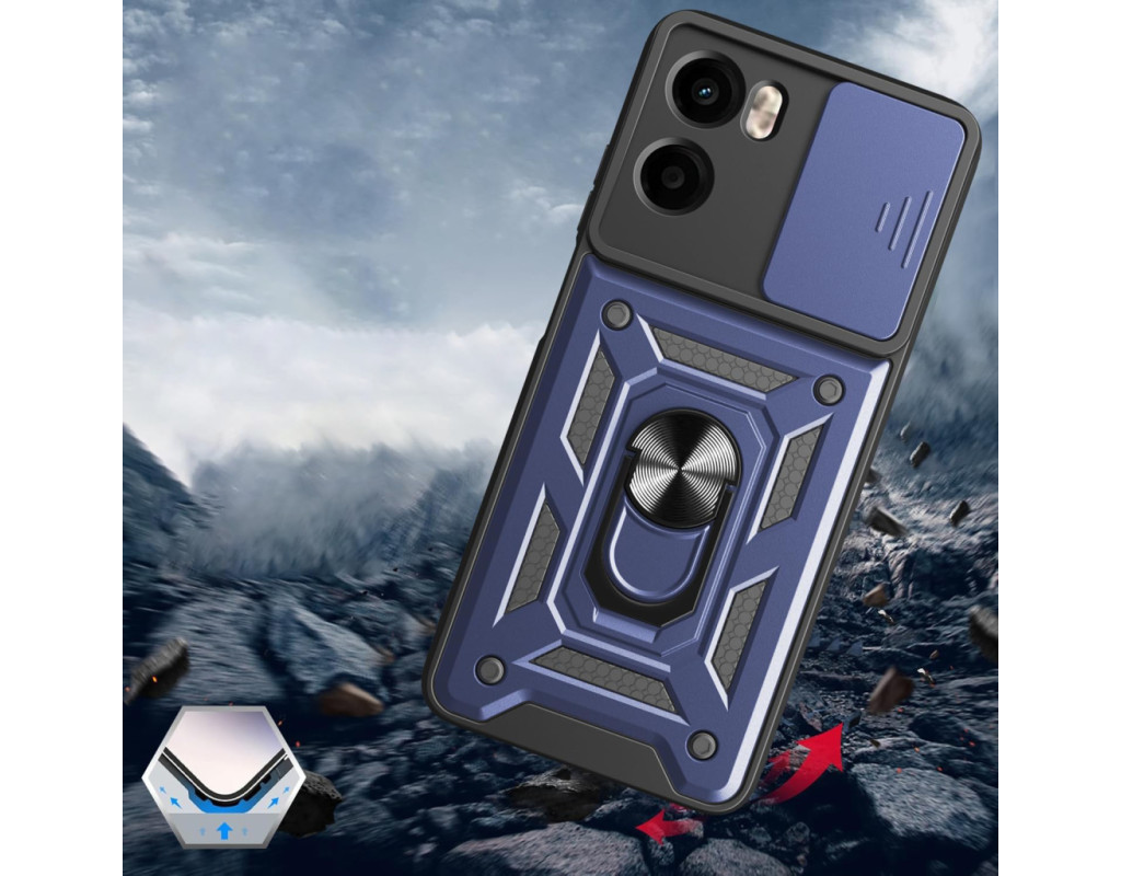 | Протиударний чохол Military BeCover надійно захищений від будь-яких екстремальних та форс-мажорних ситуацій. Гнучка силіконова панель має жорсткий металізований корпус та кільце-підставку для пальця. Чохол здатний витримати навіть сильні удари та подряпини. Вбудований регульований кронштейн для кільця: кільце, що обертається на 360°, знімається або висувається як підставка, щоб звільнити руки. Це дозволить вам використовувати кільце як підставку для гаджета, використовуючи свій смартфон під час перегляду відео, роблячи фото або користуючись Інтернетом. Чохол приємний на дотик, має протиковзне покриття проти поту та відбитків пальців. М'який тонкий матеріал не пошкоджує мобільний телефон, він ударостійкий і піднятий, утворюючи борти, щоб захистити камеру та екран. Конструкція сумісна з магнітним тримачем (не включаючи магнітне автомобільне кріплення): у цьому випадку може надійно утримувати магнітне автомобільне кріплення та вільно обертатися (не сумісне з бездротовою зарядкою)." |