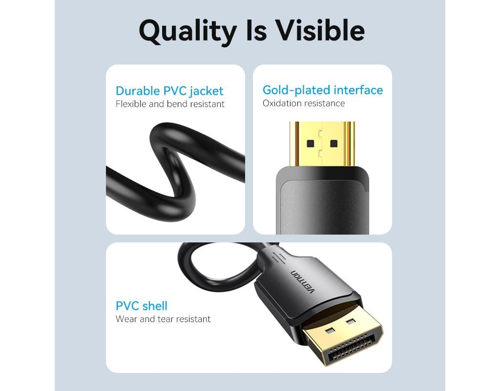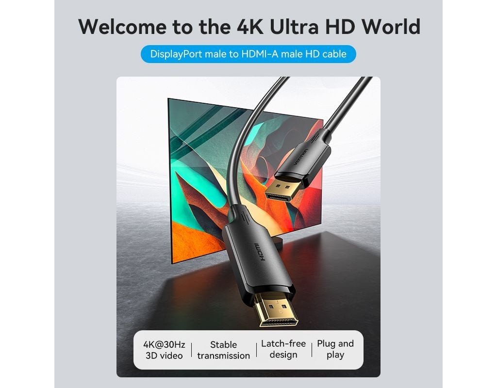 Кабель мультимедийный DisplayPort M to HDMI M 1.8m 4K black VENTION (HFOBAC)