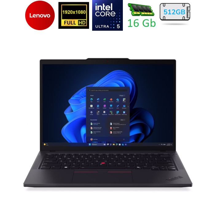 14", 1920x1200 (WUXGA), IPS, 400nits, Intel Core Ultra 5 225U (1.3 - 4.8 ГГц), 16 ГБ, SSD - 512 ГБ, Intel Arc Graphics, без операционной системы, 57 Втч, сканер отпечатков пальцев, зарядка от USB, украинская клавиатура, 1.38 кг, черный