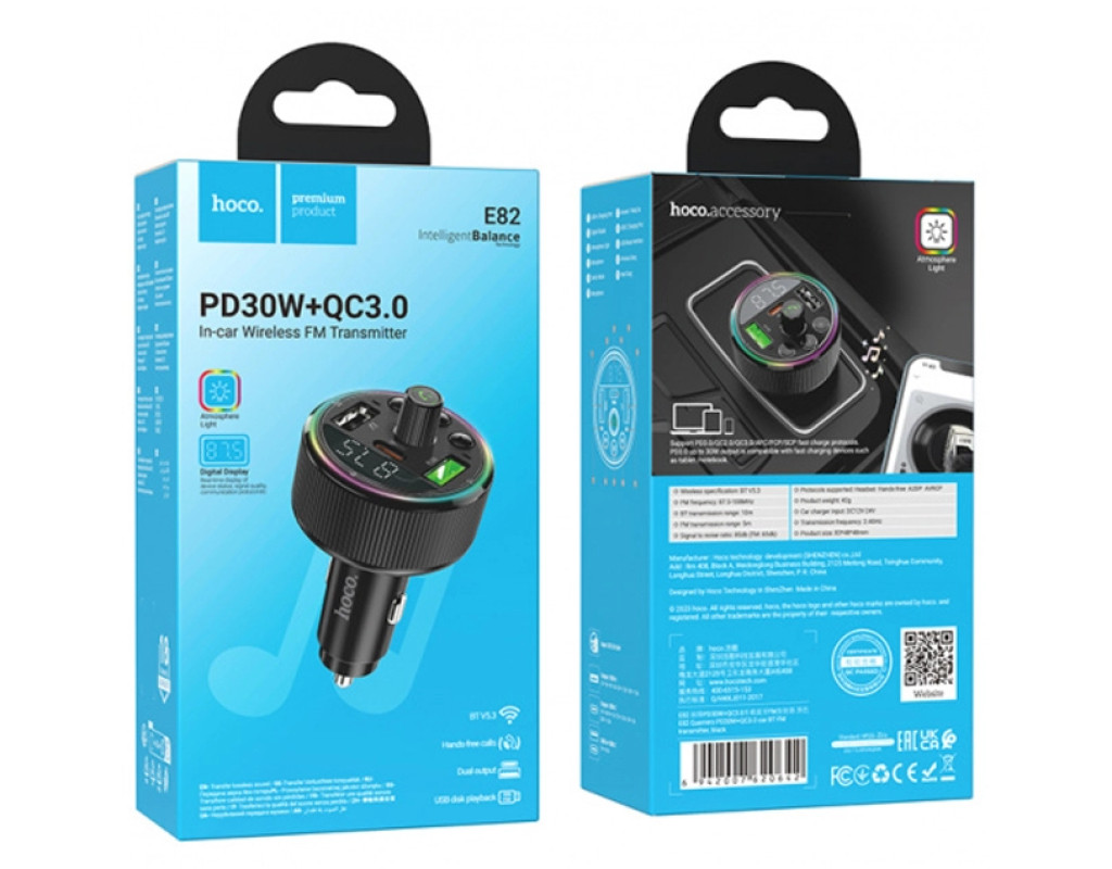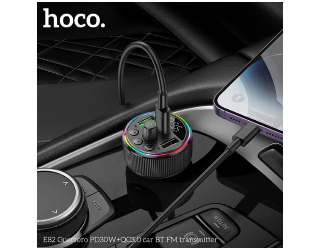 FM модулятор Hoco E82 Guerrero PD30W+QC3.0 – це сучасний пристрій, який забезпечує якісну передачу звуку через автомобільну аудіосистему, використовуючи FM-частоти. Модель підтримує швидку зарядку Power Delivery 30W і QC3.0, що дає змогу поповнювати енергію ваших гаджетів у дорозі. Компактний дизайн і висока якість матеріалів виготовлення забезпечують довговічність і надійність у використанні. FM модулятор легко під’єднується та синхронізується з вашим пристроєм через Bluetooth, що робить його незамінним помічником для водіїв, які цінують комфорт і безпеку на дорозі. Особливості FM модулятора Hoco E82 Guerrero PD30W+QC3.0: |