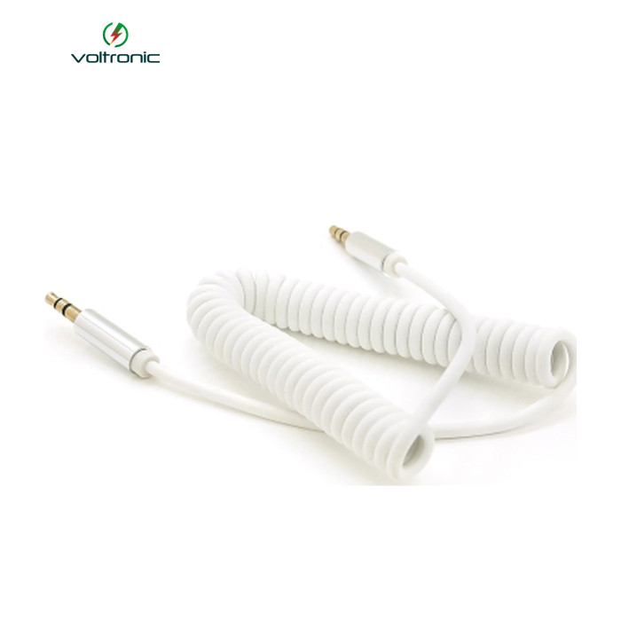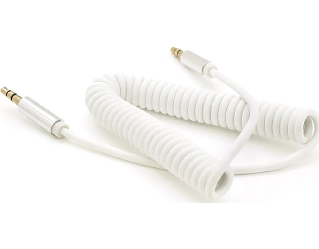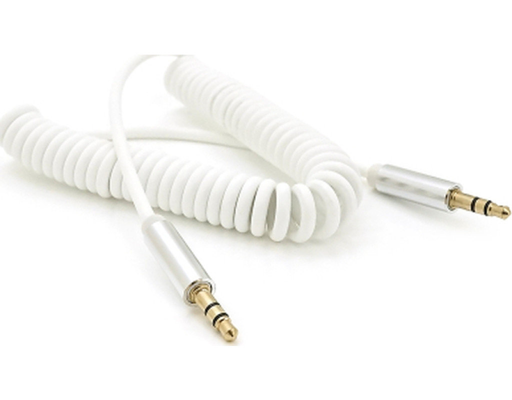 Кабель AUX Audio DC3.5 папа-папа 1.5м пружина, CCA Stereo Jack, (круглый) White cable, Box |