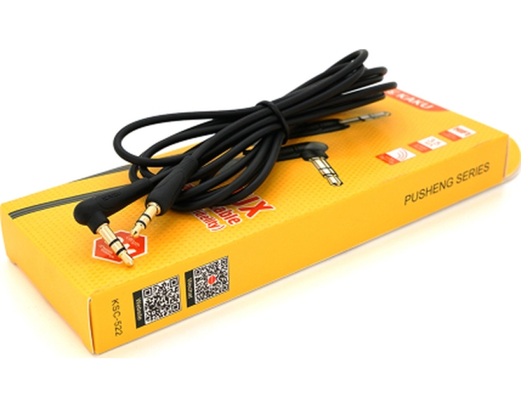 Кабель iKAKU KSC-522 PUSHENG AUX Audio DC3.5 папа-папа 2.0м, GOLD Stereo Jack, (круглый) Black cable, Box |