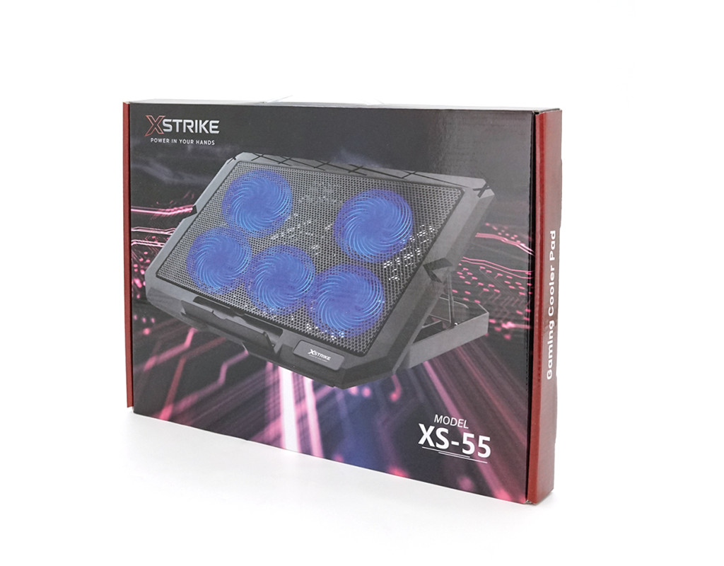 Підставка під ноутбук XSTRIKE XS-55, 10-17", 5*70мм 2200±10% RPM, корпус пластик+алюміній, 2xUSB 2.0, 356x259x28mm, RGB, Box Q20