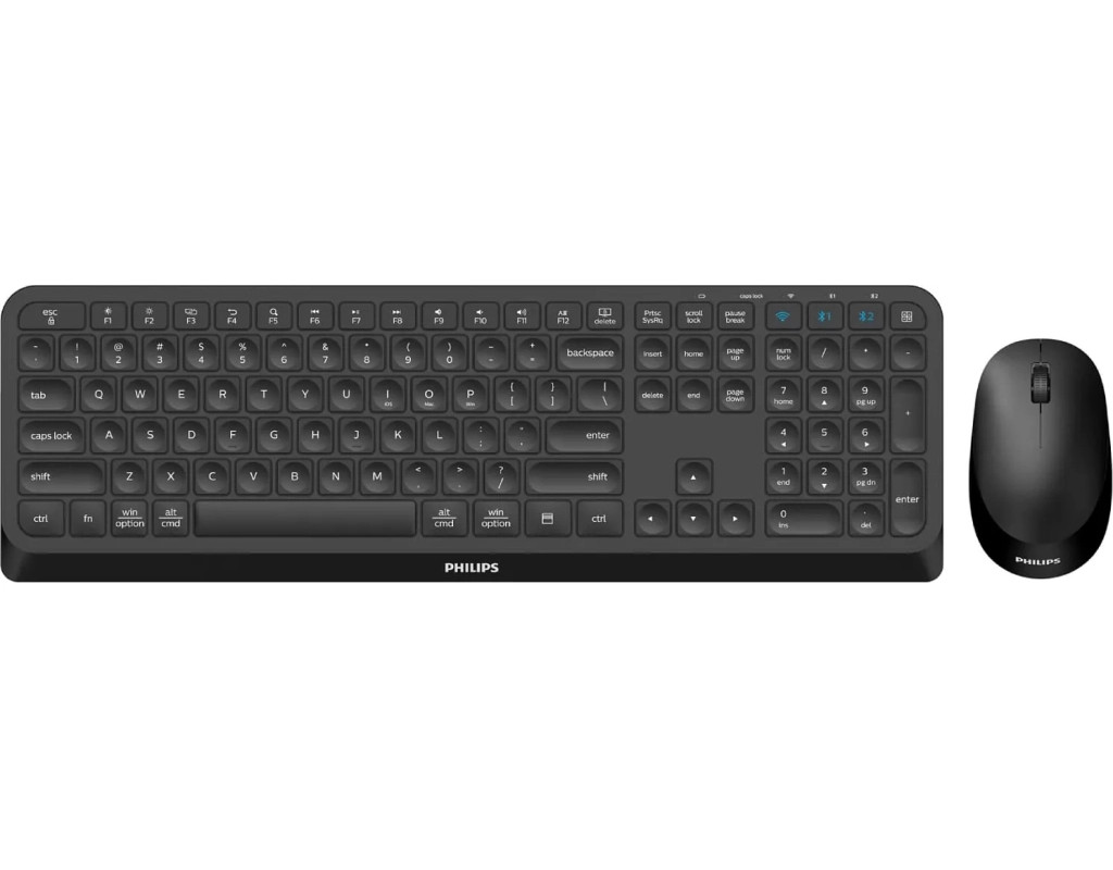 Комплект беспроводной Philips 6407 – это удобное и функциональное решение, которое поможет вам работать продуктивно без лишних усилий. Тихая беспроводная клавиатура будет способствовать эффективному выполнению задач. Устанавливайте функции программируемых клавиш и получайте легкий доступ к необходимым командам. Комфортная в использовании беспроводная мышка одинаково хорошо подходит для правой и левой руки. Разрешение 1600 DPI делает мышку точной и быстрой. Комплект беспроводной Philips 6407 совместим со всеми ноутбуками и ПК с операционными системами Windows 7, Windows 8, Windows 10 или более поздней версии; Linux V1.24 и выше; Mac OS 10.5 и выше. Забудьте о беспорядках от кабелей на рабочем столе. Устанавливайте соединение Philips 6407 сразу с тремя совместимыми устройствами с помощью беспроводных технологий – радиосвязи 2,4 ГГц и Bluetooth. |