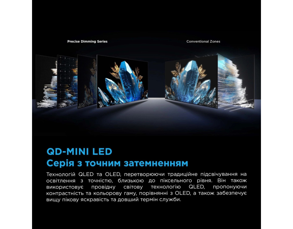 TCL C6K Premium QD-MiniLED - это сочетание передовых технологий и стильного дизайна, созданное для обеспечения высокого качества изображения и комфорта просмотра. Благодаря инновационным решениям, TCL C6K гарантирует яркое изображение, плавность движений и изящный вид, что делает его идеальным выбором для современных пользователей. Яркое и реалистичное изображение с технологией QD-MiniLED Телевизор TCL C6K оснащен технологией QD-MiniLED, которая обеспечивает точную подсветку с до 512 зон затемнения. Это позволяет добиться высокого уровня контрастности, где черный цвет выглядит глубоким, а яркие оттенки - насыщенными. Благодаря поддержке высокого уровня HDR-яркости изображение выглядит более реалистичным, с четкими деталями даже в самых темных или ярких сценах. Технология QLED дополнительно улучшает цветопередачу, обеспечивая широкий спектр цветов для более естественного и живого изображения. Конденсированная микролинза Собственно разработанная компанией TCL технология конденсированных микролинз точно контролирует направление света благодаря конструкции арочного моста с регулировкой яркости. Благодаря элитной модели расчета типа света формируется золотая кривизна с чрезвычайно высокой фокусировкой света, что значительно улучшает равномерность подсветки и управления ореолом для более четкой детализации экрана. Благодаря мощной оптической технологии Mini LED от TCL, C6K обеспечивает поразительный Micro-OD. Он устраняет проблему ореола Mini LED, используя конденсированную микролинзу и сверхвысокую зонированность, придавая звездам на ночном небе глубокий, нежный и четкий вид. Плавность и четкость для динамических сцен Серия C6K имеет частоту обновления экрана 144 Гц, что обеспечивает очень плавное воспроизведение быстрых сцен, таких как спортивные события или динамические игры. HVA панель гарантирует широкие углы обзора, что позволяет наслаждаться четким изображением из любой точки комнаты. Эти характеристики делают телевизор идеальным для геймеров и поклонников экшн-контента, ведь каждое движение отображается без задержек и размытия. Мощная обработка данных с AiPQ Pro Processor В TCL C6K используется процессор AiPQ Pro, который оптимизирует качество изображения и звука в реальном времени. Этот интеллектуальный процессор анализирует контент и автоматически настраивает параметры для обеспечения наилучшего опыта просмотра. Благодаря этому телевизор способен адаптироваться к разным типам контента - от фильмов и сериалов до игр, обеспечивая оптимальную четкость и глубину цвета в каждой сцене. Стильный и современный дизайн TCL C6K отличается ультратонким дизайном, идеально вписывающимся в любой интерьер. Тонкие рамки и минималистичный вид делают телевизор не только функциональным устройством, но и элегантным элементом декора. |