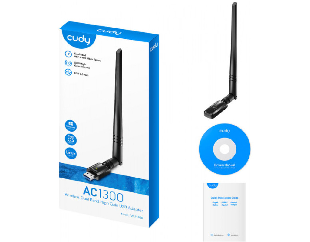 Адаптер Cudy WU1400 з інтерфейсом USB 3.0 може з легкістю замінити дротове підключення до Інтернету або перетворити ваш ПК на точку доступу Wi-Fi для мобільних пристроїв. Адаптер підтримує два частотні діапазони - 2,4 ГГц та 5 ГГц та швидкість обміну даними 300 Мбіт/с та 867 Мбіт/с відповідно. З ним ви отримаєте стабільну передачу сигналу на великі відстані та високу швидкість інтернет-з’єднань. Адаптер оснащений зовнішньою антеною з високим коефіцієнтом підсилення для ще більш широкого покриття. Адаптер Cudy WU1400 сумісний з операційними системами Windows 7/8/8.1/10, Linux, MAC OS. |