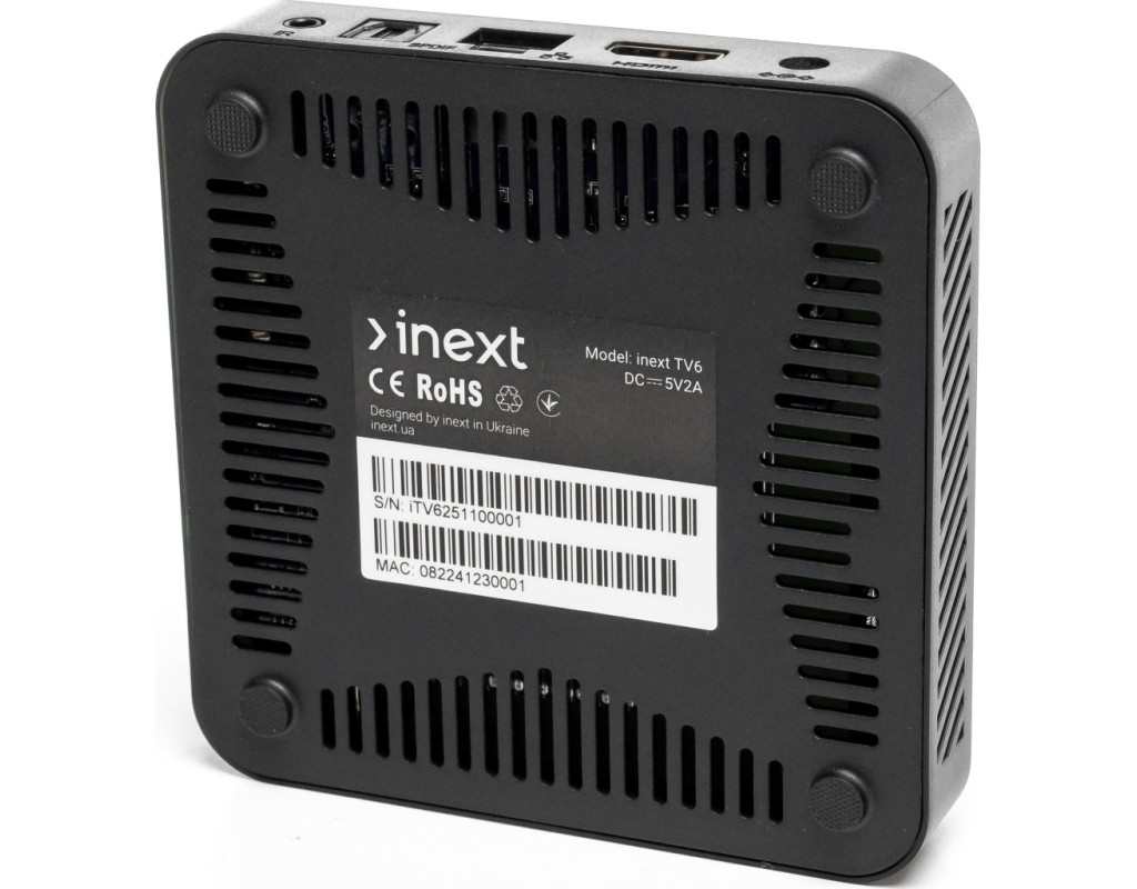 inext TV6 – умная ТВ-приставка для современного просмотра inext TV6 – это стильная и компактная Android-приставка, которая превратит любой телевизор в полноценный мультимедийный центр. Она идеально подходит для просмотра фильмов в 4K, онлайн-телевидении, YouTube, IPTV или работы с приложениями, таких как Megogo, Sweet.tv, Netflix (через браузер), YouTube Kids и т.д. Работает на Android 12 (AOSP) – интуитивно понятный интерфейс, простая настройка, доступ к сотням популярных сервисов и приложений. Поддержка 4K Ultra HD – качественная картинка с высокой детализацией. Приставка легко воспроизводит видео в H.265, H.264, VP9 и других современных кодеках. Максимум совместимости: